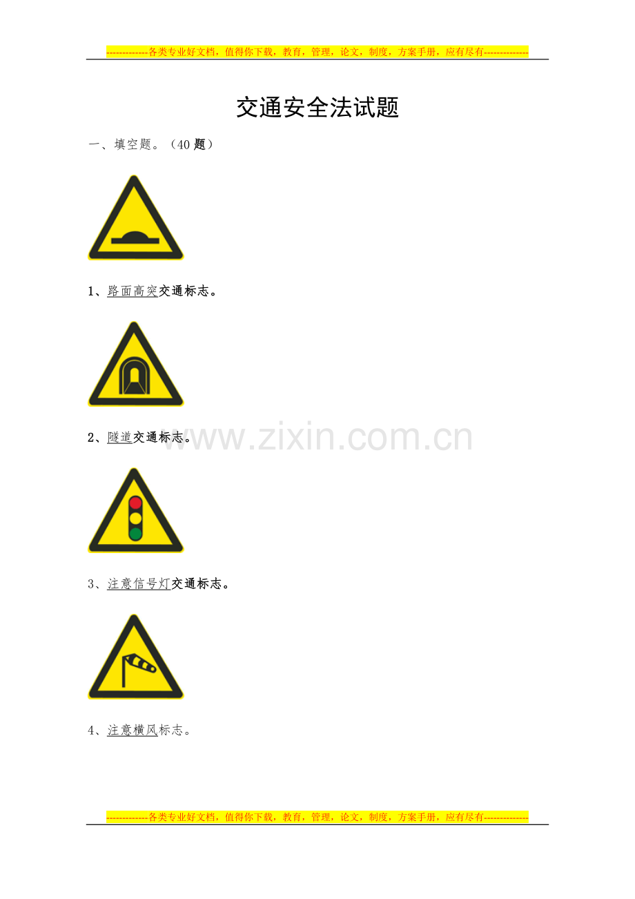 1、路面高突交通标志。