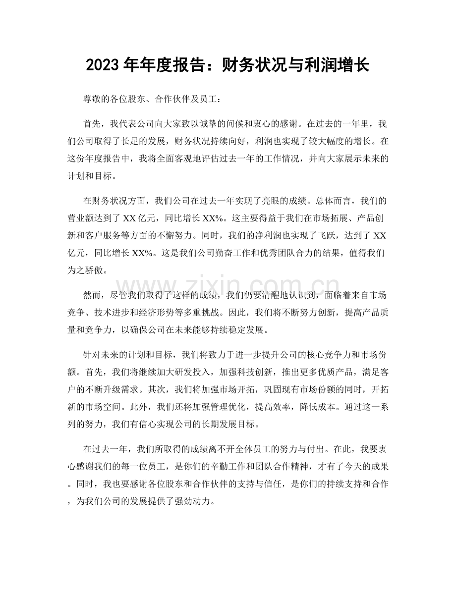 首先,我代表公司向大家致以诚挚的问候和衷心的感谢。在过去的一年里,我们公司取得了长足的发展,财务状况持续向好,利润也实现了较大幅度的增长。在这份年度报告中,我将全面客观地评估过去一年的工作情况,并向大家展示未来的计划和目标。