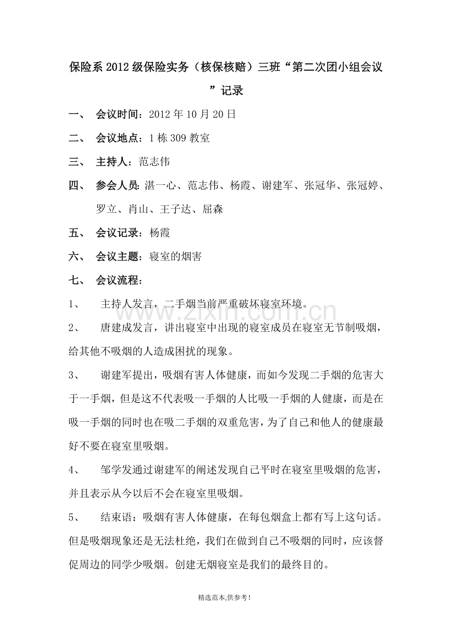 保险系2012级保险实务(核保核赔)三班“第二次团小组会议