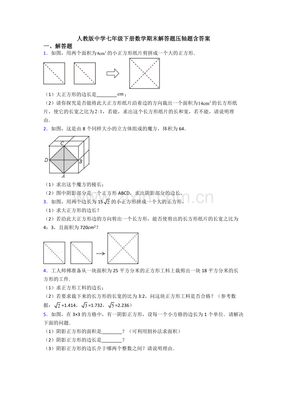 1.如图,用两个面积为的小正方形纸片剪拼成一个大的正方形.