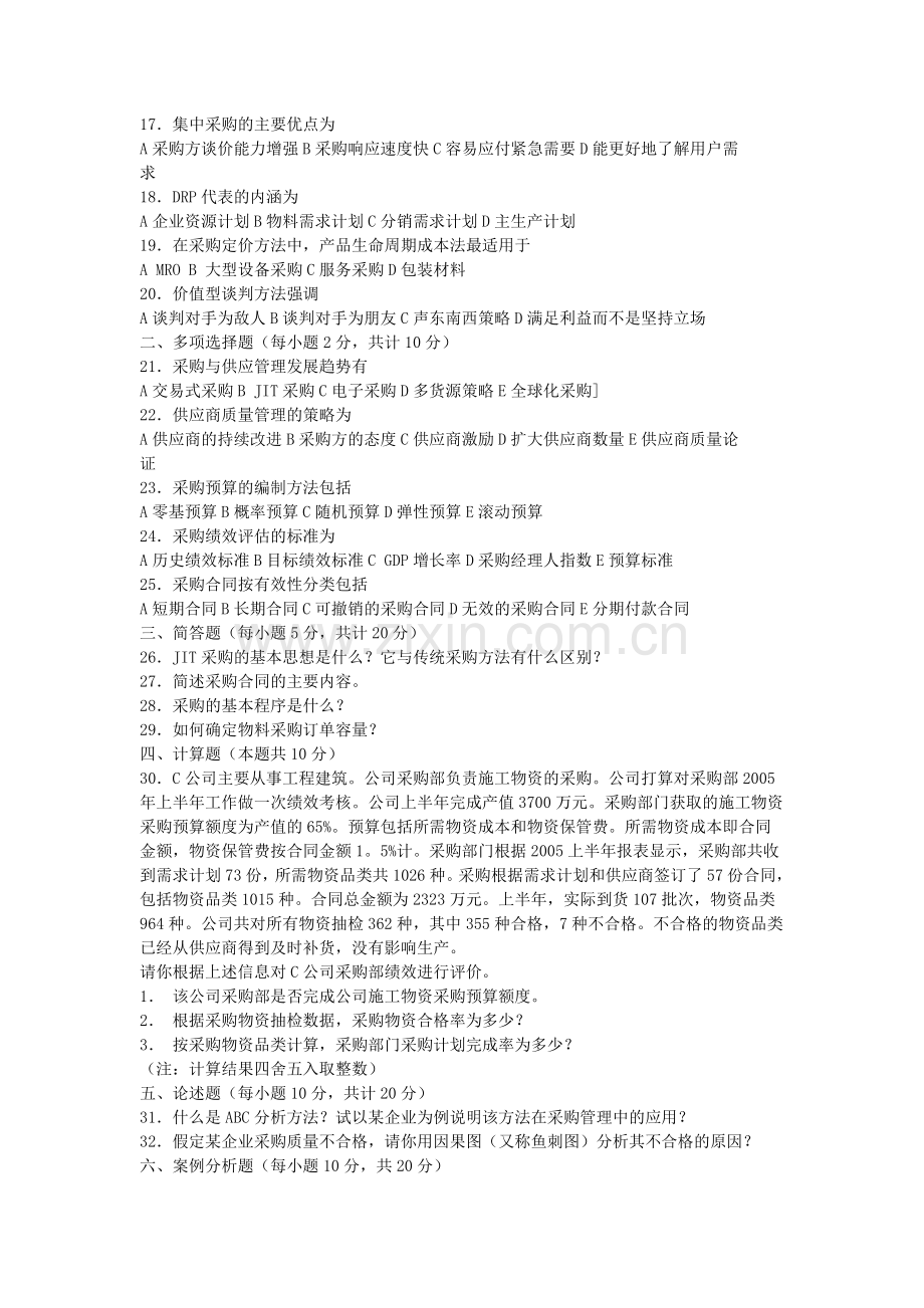 33.⑴采购部门的质量管理:物料采购的质量管理;物料采购的组织工作;物料采购供应的协调工作;物料采购供应的控制工作⑵建立采购质量管理体系:培植现代质量管理理念,强化采购质量意识;加强采购全过程质量管理;努力做好采购质量管理的基础工作;建立采购质量管理保证体系。