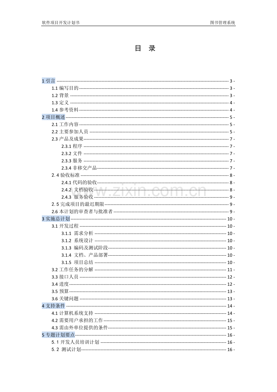 软件项目开发计划书 图书管理系统