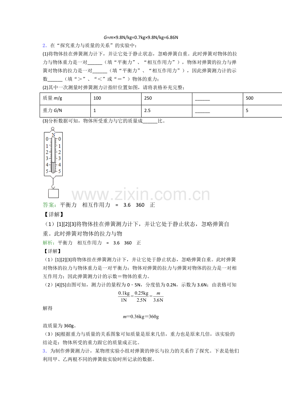 答案:竖直 静止 2 误差 物体所受的重力与物体质量成正比