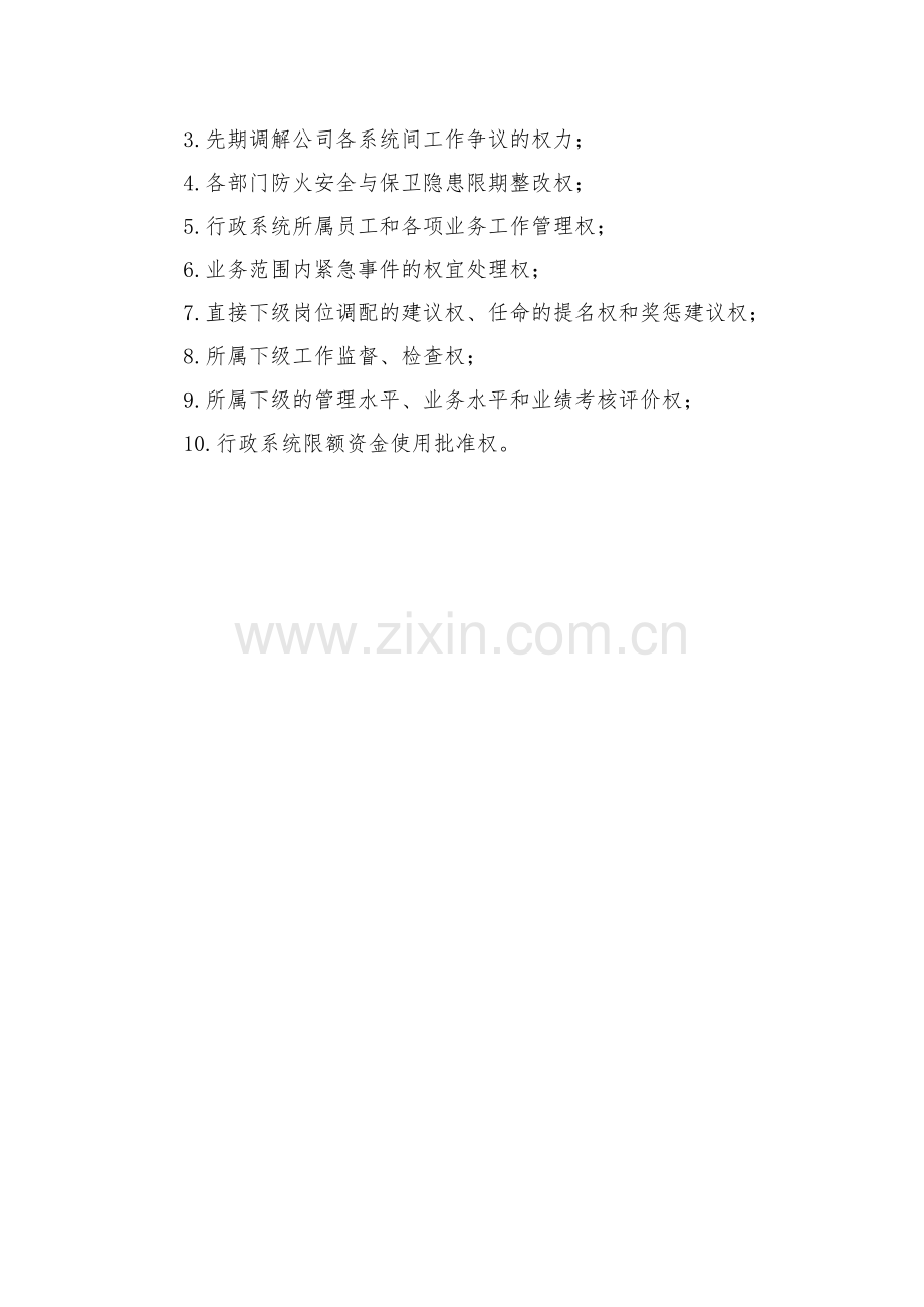 5.行政系统所属员工和各项业务工作管理权;