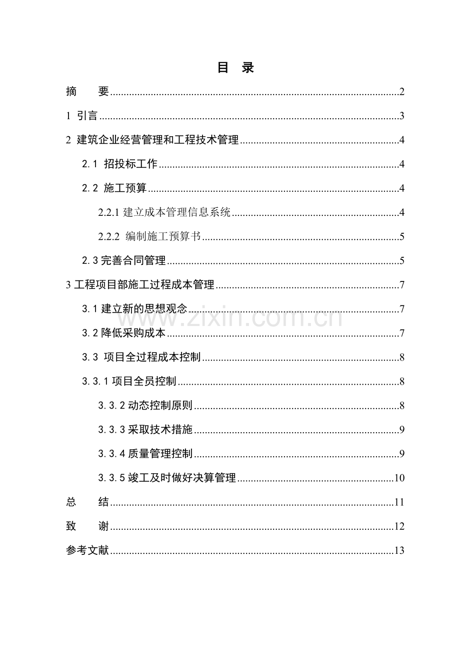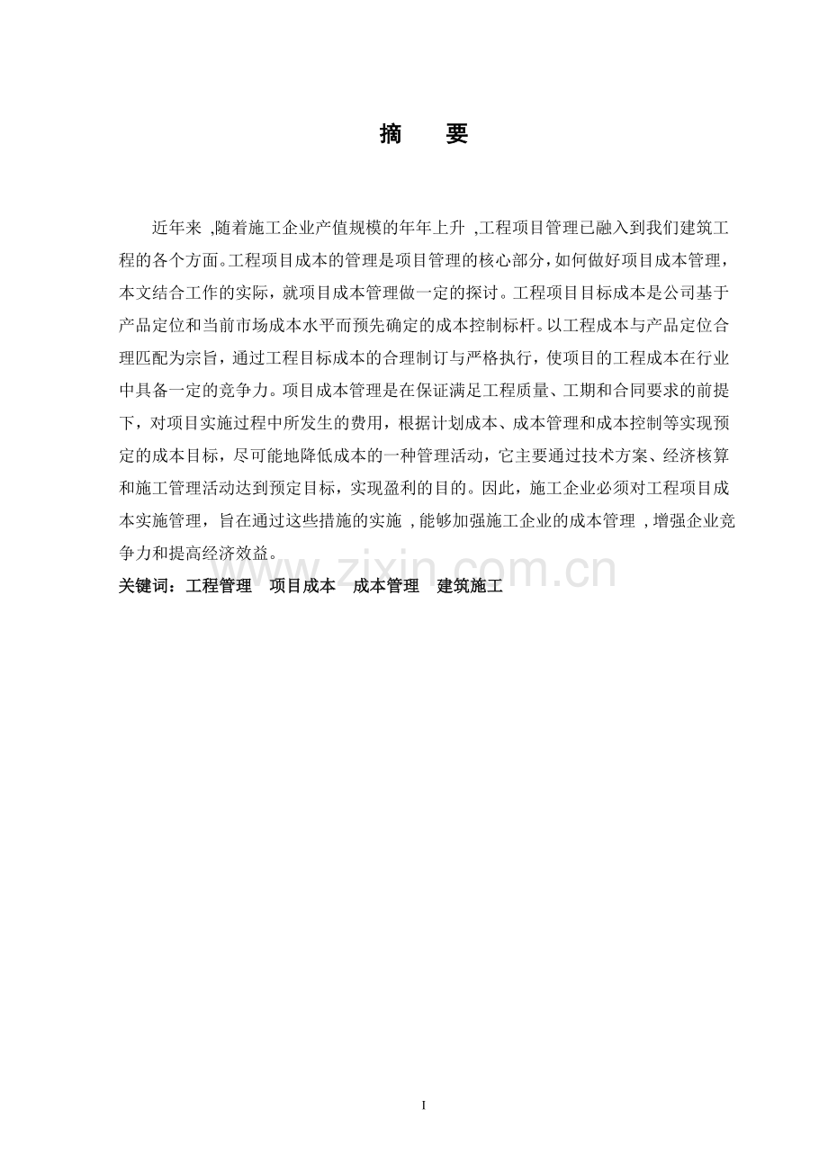 关键词:工程管理 项目成本 成本管理 建筑施工