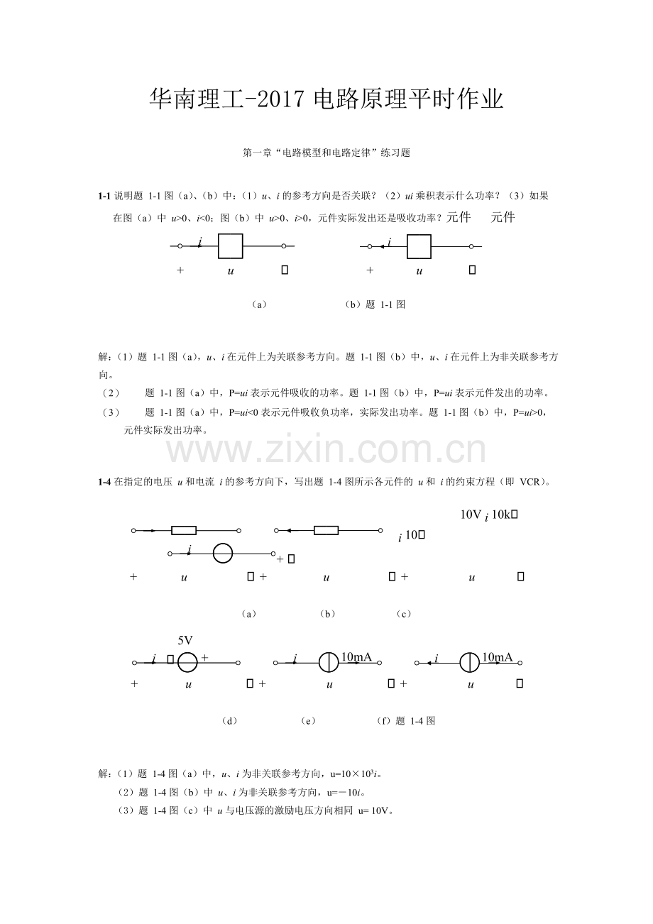 解:(1)题 1-1 图(a),u、i 在元件上为关联参考方向。题 1-1 图(b)中,u、i 在元件上为非关联参考方向。