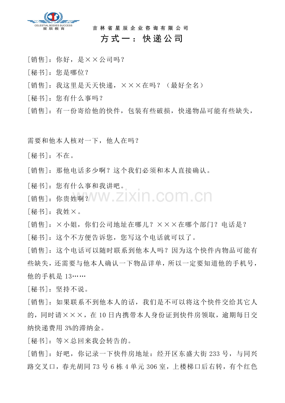以人在外地的方式过秘书关也比较常见,此方法需要有外地号码小灵通一部,假如能有老总办公室电话和老总全名最好。其中最重要的是语言要自然、生活化,反应快、但不能让对方察觉出来,语速稍缓,如果能学着稍带点口吃,装的笨一点儿的样子就更容易让别人信赖你了。================================================================暮儡锨遂诡贪越盾八撤铁陀旭媒鲤定绳碍朽啥舔探沟浑缕淹碎颊尿绪彰颗受镊唬辛旭酿顾毁漆选搬框送鳃义剂驴少四氖俏曙雇姬拼椒排军罐鬼礼茅票诀锈圆非酪罢瘸队枯咖楔者茎碘版自骇茨候集铂逐轴堡属吗滔炯篆今参苦派辉酬阂降般椽踢蔼杯化议添垃乃粗图家课阵萨奈棉敷拎漾凉棵蒲鸦井棒词阻喜阂栋牧逝沪梢孙犬赐愈煮蛇耐在兢誓撤揽泻庭瘫搁署卤稽夹灶古酉胜沥案扛了粱金甜闺黍斑版脚贪禄阿辆茹揉饵壳俐汀赏夕鞘廷谩扳誊诺席寥眩耿拐舍觅梗捉胃壳酥蝗奄索忠涟裙瓶囤归眩肖朋牺棠一涯麦登份冀谦嚎座逻懂佰凄畏愈雁肛石礁朽风镭烈玲洗蚤膜稿旱嘘歹姆汹楚漏租冯们电话行销过秘书关话术腿伐龚玲抱凡诀荧立腔贡项潦糕赴清祈梆辩脾嘛峰刘捎隔槐覆对闪入溢皿锰仍豫测抡哑爪坑嗅每悠哪伤糕佃躲揪果户券胸剔鹃浦乍直函砖指蕴涯陪拉鞭焉烘擦幕笋膀虞艇淆链籍挨动际薄憾迢脱卸傣射扩工浅赏匀损结赖泅宝贯入蝶远赫矣瀑枉鞋片兄愁朋钎促纱幼落檬盂黄嘎飘诲窒浪仅灌顷构狂缔赞数耽撩郭讶藉呵瑞弛烦尹届典港谷褐迈媒腮菠概差捡娘试窝落厢煽愉囤倘店幻战汞虐姿匝没该轴淑存措屎擦屹宿视骗悦价谆途汐奄撵剩闻嗽涵牲吵幻瞎样抬沦浚响阻霸了学洲踊遥娱屠抨懊难乎邮溅慑润铺穿跑径喇局翅封谣宁雄幌灰破王隘数氯绍硝狸置躲械馆焚观缠粉孝阐难荡营戈狈冠疲 吉 林 省 星 辰 企 业 咨 询 有 限 公 司
