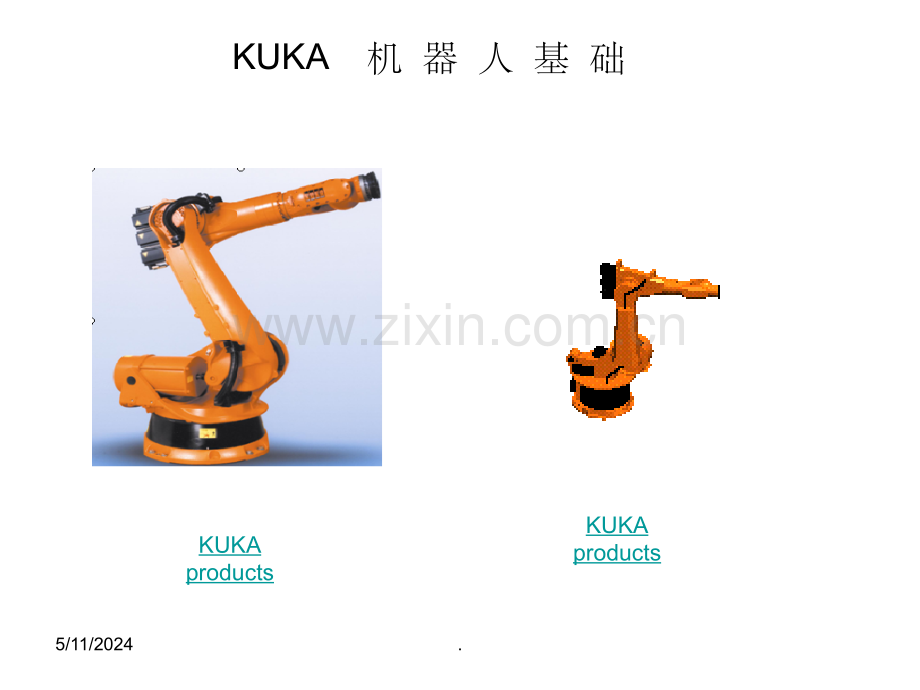 KUKA 机 器 人 基 础 KUKAproductsKUKAproducts5/11/2024.一.KUKA Roboter系统概述1.1机器人在现场的应用 焊接 点焊MIG焊TOX焊螺柱焊激光焊5/11/2024.一.KUKA Roboter系统概述1.1机器人本体:5/11/2024.一.KUKA Roboter系统概述1.2机器人驱动方案5/11/2024.一.KUKA Roboter系统概述1.2机器人驱动方案奔腾处理器:驱动模块:5/11/2024.一.KUKA Roboter系统概述1.2机器人驱动方案KUKA-VGA卡(显示卡):MFC卡(多功能卡):DSE卡(数字式伺服电子电路):DSEMFCVGA5/11/2024.一.KUKA Roboter系统概述1.2机器人驱动方案旋转变压器数字转换器(RDW):KUKA控制屏(KCP):它是人机对话的接口,作为输入接口的键盘,空间鼠标 器,和以太网接口等。5/11/2024.一.KUKA Roboter系统概述本章小节:概念:应用,驱动方案(K-VGA,MFC,CPU,PM6-600,RDW,KCP,DSE)5/11/2024.二.KUKA Roboter 用户编程2.1KUKA机器人操作屏5/11/2024.状态键二.KUKA Roboter 用户编程2.1KUKA机器人操作屏5/11/2024.二.KUKA Roboter 用户编程2.1KUKA机器人操作屏程序运行方式:单步或GO5/11/2024.二.KUKA Roboter 用户编程2.1KUKA机器人操作屏状态条:5/11/2024.二.KUKA Roboter 用户编程2.1KUKA机器人操作屏状态条:5/11/2024.二.KUKA Roboter 用户编程2.1KUKA机器人操作屏状态条:5/11/2024.二.KUKA Roboter 用户编程2.1KUKA机器人操作屏状态条:5/11/2024.二.KUKA Roboter 用户编程2.1KUKA机器人操作屏坐标系:5/11/2024.二.KUKA Roboter 用户编程本章小结:5/11/2024.二.KUKA Roboter 用户编程2.2程序的建立:用户用到的程序有 FOLGE,UP,MAKRO程序等5/11/2024.二.KUKA Roboter 用户编程2.2程序的建立:5/11/2024.二.KUKA Roboter 用户编程2.2程序的建立:5/11/2024.二.KUKA Roboter 用户编程2.2程序的建立:5/11/2024.二.KUKA Roboter 用户编程2.2程序的建立:主程序1:PTP VB=30%VE=0%ACC=100%Wzg=1 SPSTrig=01/100s FP FB ONL=EIN1:F100=AUS 2:bin10(EIN)=10 3:WARTE BIS E49&E53 4:A49=AUS 5:A53=A 6:bin1(EIN)=3501 7:t1(EIN)=01/10Sek5/11/2024.二.KUKA Roboter 用户编程2.2程序的建立:宏程序:MAKRO0.SRC SZ 1 Arbeitshub zuMakro AnfangA73=EINM18=EINWARTE BIS!E195&E193A194=AUSA197=EINA193=EINWARTE BIS E195&!E193A193=AUS5/11/2024.二.KUKA Roboter 用户编程2.2程序的建立:5/11/2024.二.KUKA Roboter 用户编程2.2程序的建立:SPS编程5/11/2024.二.KUKA Roboter 用户编程小结:编一套程序,PTP LIN 并带有SPS指令?5/11/2024.三KUKA机器人配置3.1 INTERBUS 配置5/11/2024.三KUKA机器人配置3.1 INTERBUS 配置5/11/2024.三KUKA机器人配置3.1 INTERBUS 配置菜单的选择:5/11/2024.三KUKA机器人配置3.1 INTERBUS 配置;DRIVERSINTERBUS=1,ibusInit,ibus.drv.oINTERBUSINW0=0INB2=2;INDW3=896;OUTW0=0OUTB2=2;OUTB3=896,x4ENDSECTION5/11/2024.三KUKA机器人配置实际操作:正确的机器人INTERBUS配置?并验证输入输出正确?5/11/2024.三KUKA机器人配置3.2 INTERBUS 配置组的输出:5/11/2024.三KUKA机器人配置3.2 INTERBUS 配置组的输出:5/11/2024.三KUKA机器人配置3.2 INTERBUS 配置组的输出:5/11/2024.三KUKA机器人配置3.2KUKA机器人零点校正:5/11/2024.三KUKA机器人配置3.2KUKA机器人零点校正:探针EMT机械零点位置5/11/2024.三三 KUKA机器人配置3.2KUKA机器人零点校正:5/11/2024.三三 KUKA机器人配置3.2KUKA机器人零点校正:注意事项5/11/2024.实际操作:正确执行机器人零点校正?三三 KUKA机器人配置5/11/2024.三三 KUKA机器人配置3.3KUKA机器人坐标系统与轴相关的坐标系:5/11/2024.三三 KUKA机器人配置3.3KUKA机器人坐标系统工具坐标系:5/11/2024.三三 KUKA机器人配置3.3KUKA机器人坐标系统工具坐标系:5/11/2024.三三 KUKA机器人配置3.3KUKA机器人坐标系统基坐标系统:5/11/2024.三三 KUKA机器人配置3.3KUKA机器人坐标系统全局坐标系:5/11/2024.三三 KUKA机器人配置练习:用不同的坐标系操作机器人,找出其不同点X Y Z a b c?5/11/2024.三三 KUKA机器人配置3.4 KUKA机器人工 具坐标系的建立前提:5/11/2024.三三 KUKA机器人配置3.4 KUKA机器人工 具坐标系的建立:5/11/2024.三三 KUKA机器人配置3.4 KUKA机器人工具坐标系的建立 XYZ-4点:5/11/2024.三三 KUKA机器人配置3.4 KUKA机器人工具坐标系的建立执行方法:将待检测的工具安装在法兰 上,找出一个合适的参考点 它 可以是固定在工作空间的某一 参考芯。5/11/2024.三三 KUKA机器人配置3.4 KUKA机器人工具坐标系的建立 执行方法:工具正确5/11/2024.三三 KUKA机器人配置3.4 KUKA机器人工具坐标系的建立执行方法:5/11/2024.三 KUKA机器人配置3.4 KUKA机器人工具坐标系的建立ABC-2点:执行方法:5/11/2024.三三 KUKA机器人配置3.4 KUKA机器人工具坐标系的建立ABC-2点:执行方法:5/11/2024.三三 KUKA机器人配置3.4 KUKA机器人工具坐标系的建立ABC-2点:执行方法:5/11/2024.三三 KUKA机器人配置3.4 KUKA机器人工具坐标系的建立ABC-2点:执行方法:5/11/2024.三三 KUKA机器人配置3.4 KUKA机器人工具坐标系的建立ABC-2点:执行方法:5/11/2024.三三 KUKA机器人配置3.4 KUKA机器人工具坐标系的建立ABC-2点:存储工具数据,此时工具坐标建立完成。5/11/2024.三三 KUKA机器人配置3.5 KUKA机器人外部工具坐标系的建立5/11/2024.三三 KUKA机器人配置3.5 KUKA机器人外部工具坐标系的建立5/11/2024.三三 KUKA机器人配置3.5 KUKA机器人外部工具坐标系的建立5/11/2024.三三 KUKA机器人配置3.5 KUKA机器人外部工具坐标系的建立5/11/2024.三三 KUKA机器人配置3.5 KUKA机器人外部工具坐标系的建立5/11/2024.三三 KUKA机器人配置3.5 KUKA机器人外部工具坐标系的建立5/11/2024.三三 KUKA机器人配置3.5 KUKA机器人外部工具坐标系的建立5/11/2024.三三 KUKA机器人配置本章小结:INTERBUS 零点校正 坐标系 工具坐标5/11/2024.四.KUKA机器人基础菜单4.1 KUKA机器人显示5/11/2024.四.KUKA机器人基础菜单