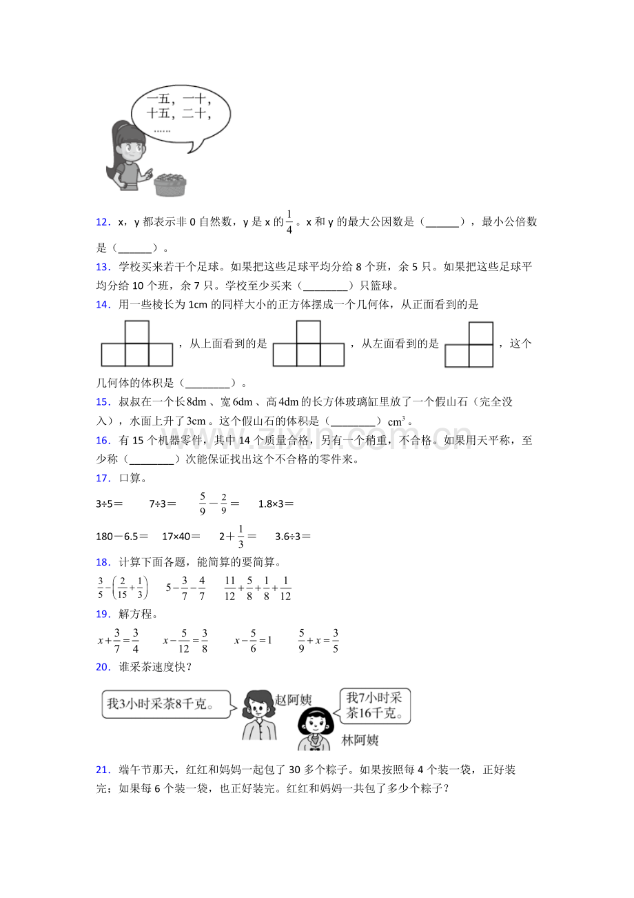 人教版小学五年级数学下册期末质量检测(含答案)完整