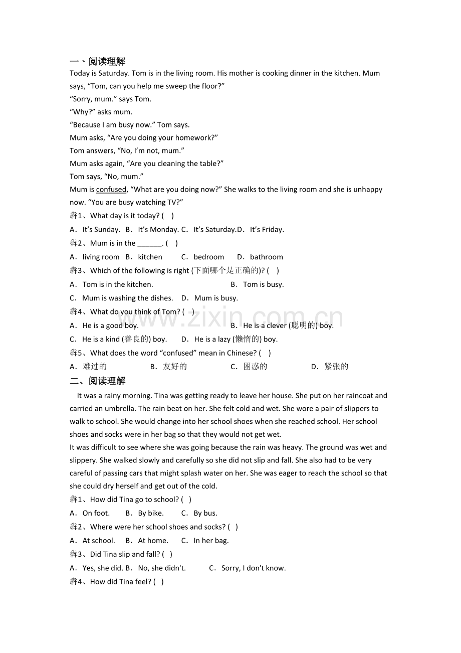 犇5、句意:单词“confused”的中文意思是什么?根据所学和短文语境,可知confused的中文意思是困惑的,故选C。
