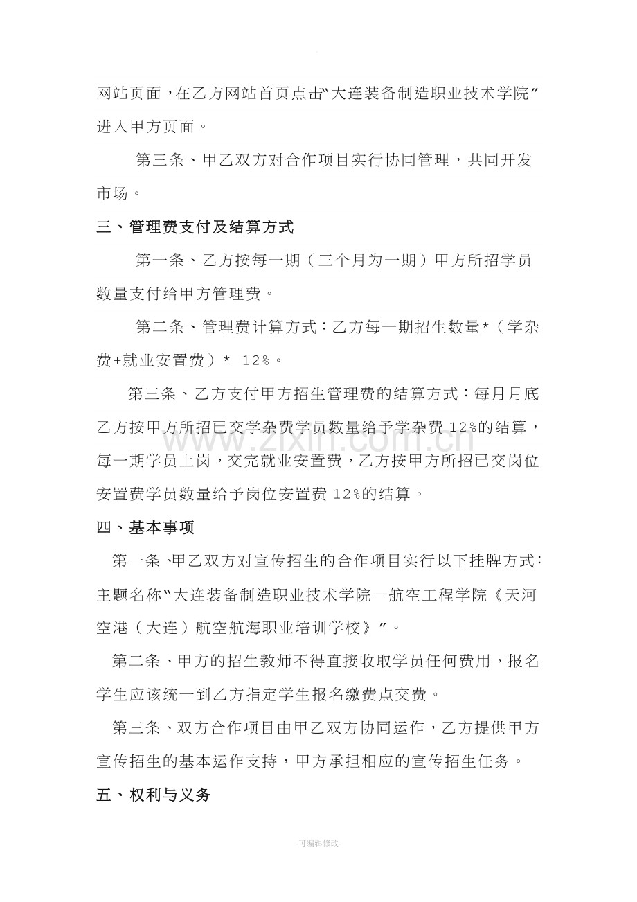 第三条、双方合作项目由甲乙双方协同运作,乙方提供甲方宣传招生的基本运作支持,甲方承担相应的宣传招生任务。