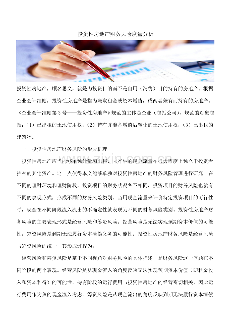 对投资性房地产财务风险管理要充分考虑当前的经济趋势,并密切联系房地产市场景气循环。