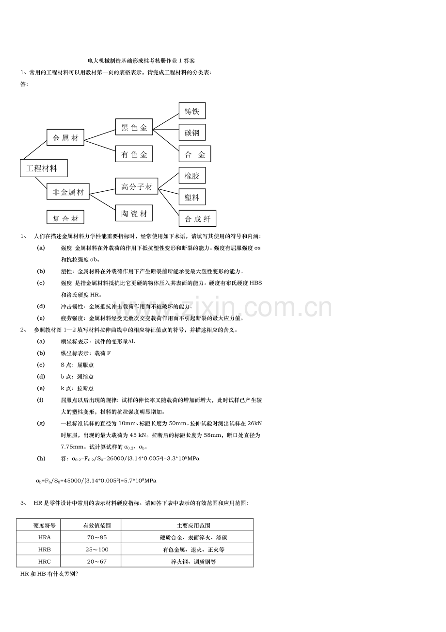 (a) 强度:金属材料在外载荷的作用下抵抗塑性变形和断裂的能力。强度有屈服强度σs和抗拉强度σb。