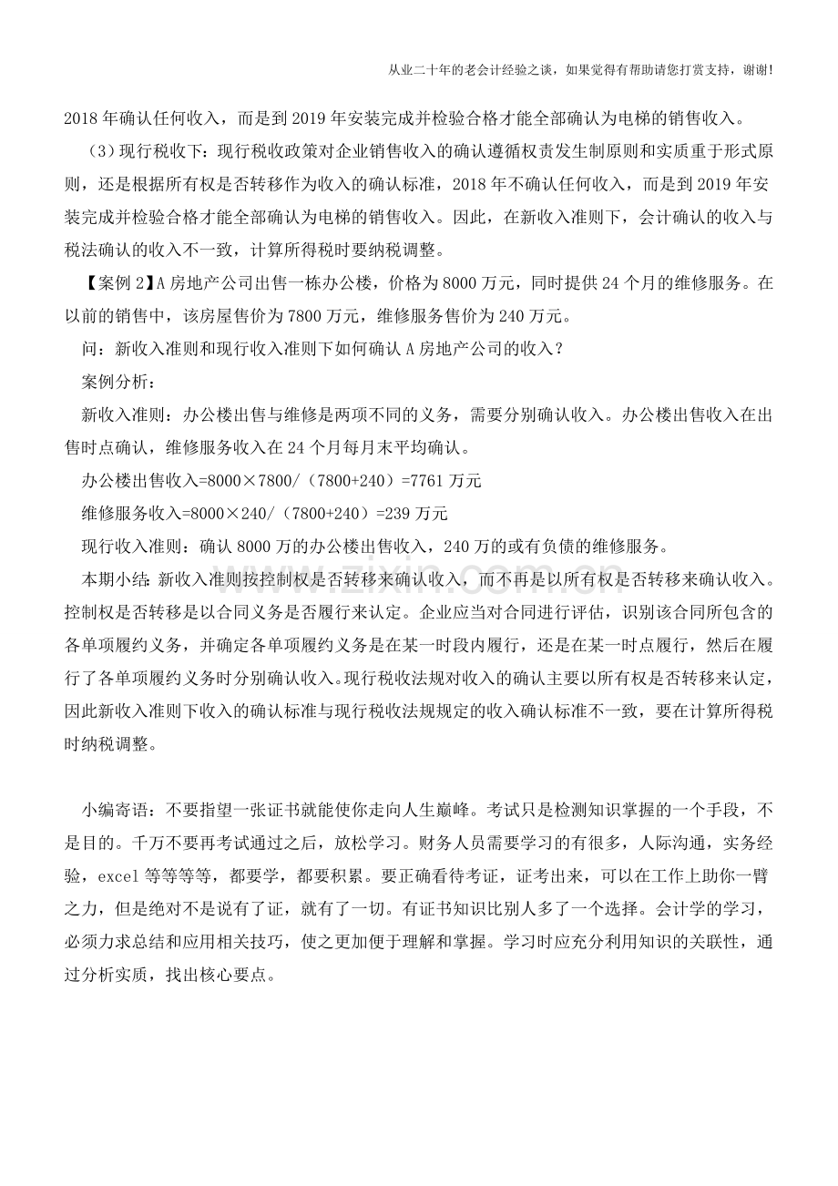 新收入准则下收入的确认标准【会计实务经验之谈】
