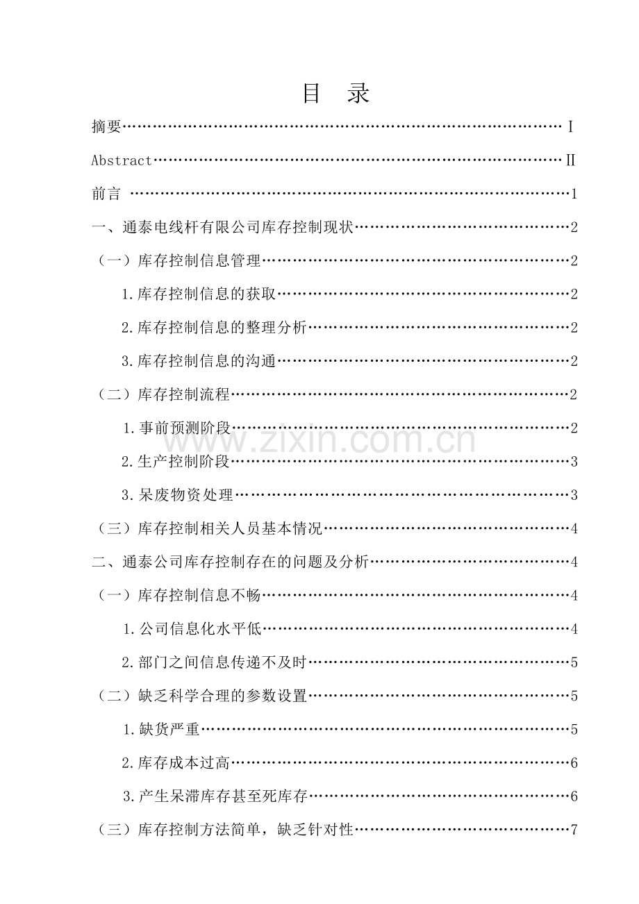 一、通泰电线杆有限公司库存控制现状……………………………………2