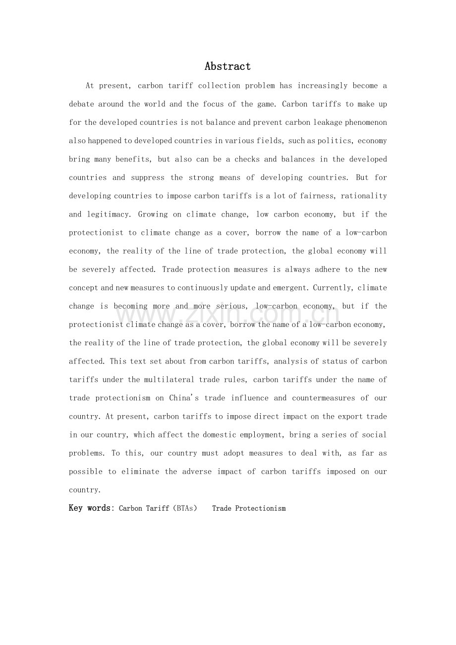 Key words: Carbon Tariff(BTAs) Trade Protectionism