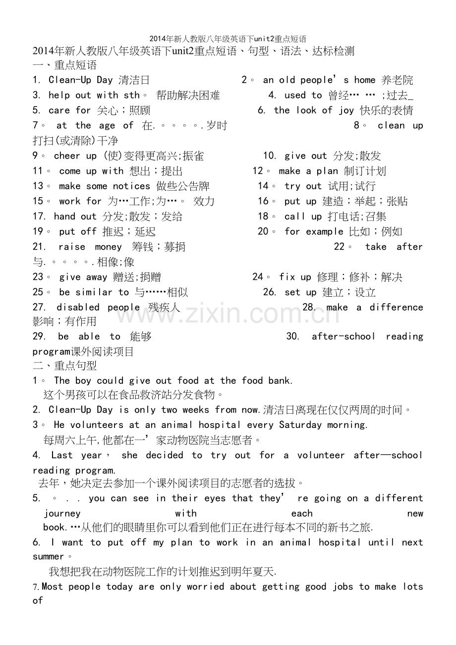 2014年新人教版八年级英语下unit2重点短语、句型、语法、达标检测