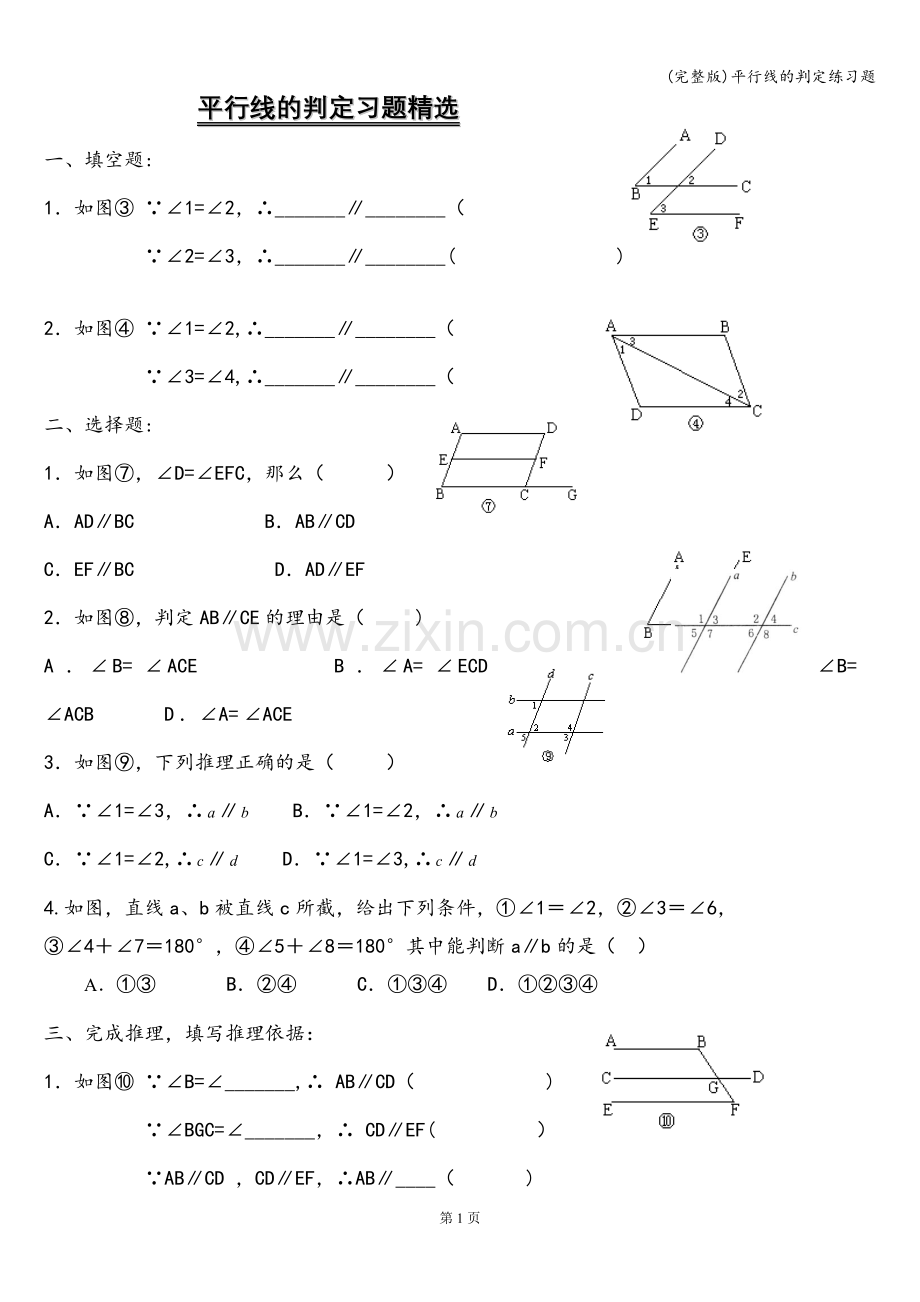 (完整版)平行线的判定练习题