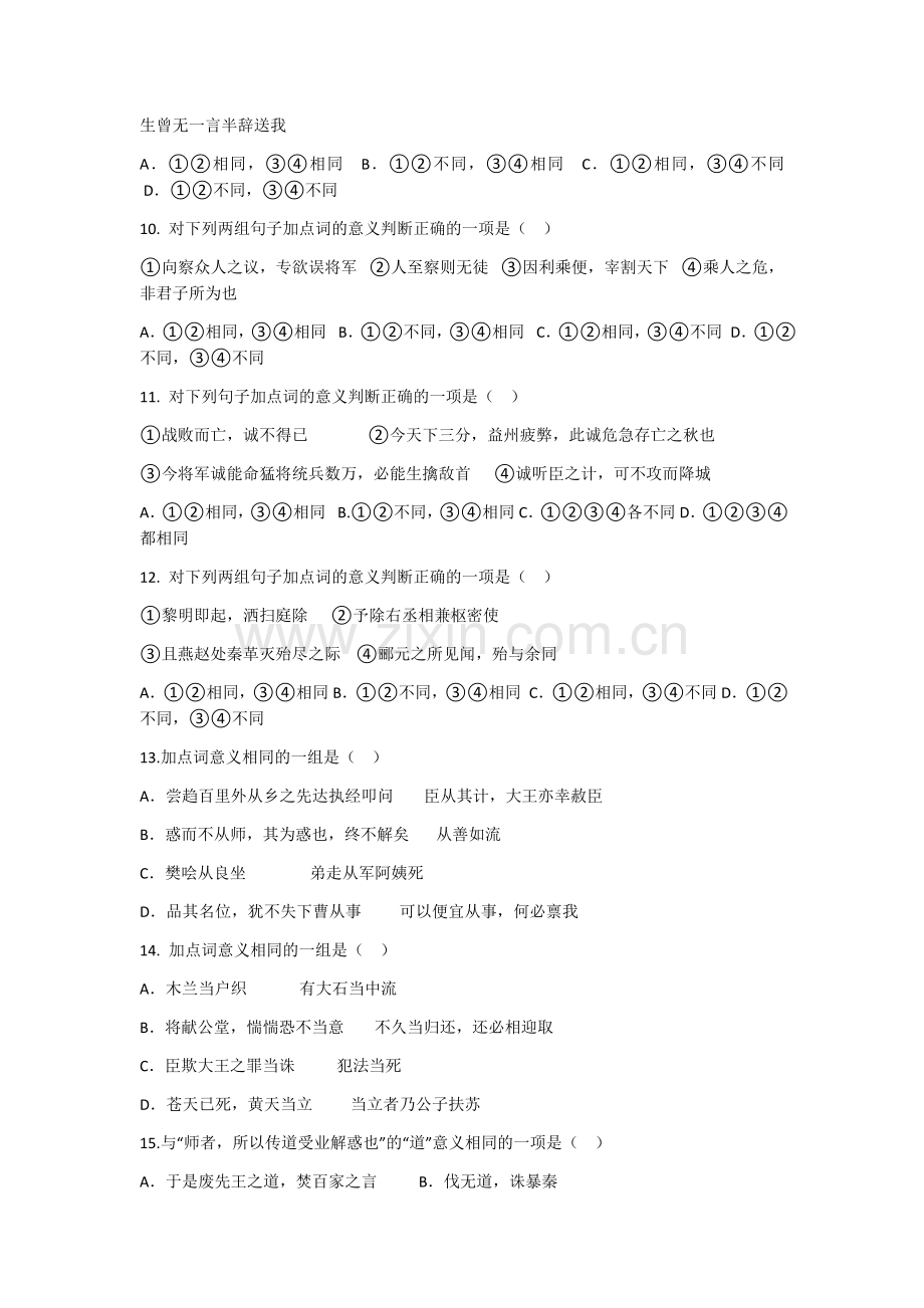 10. 对下列两组句子加点词的意义判断正确的一项是( )