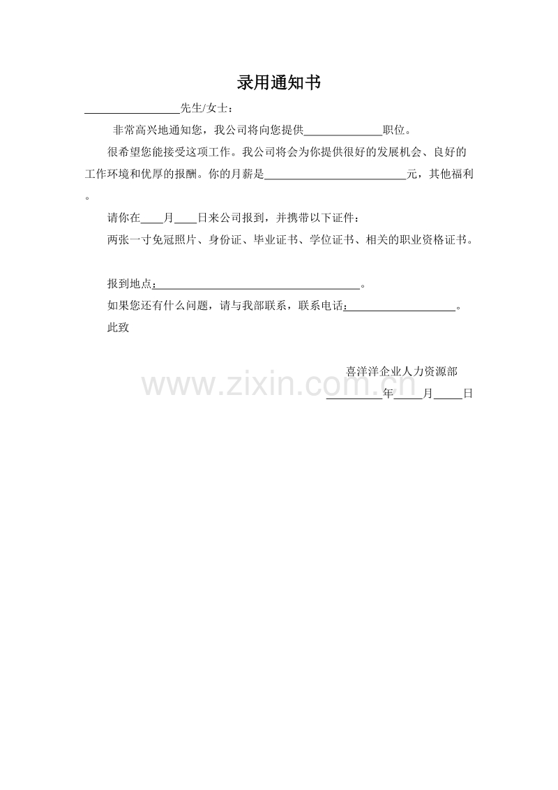 录用通知书