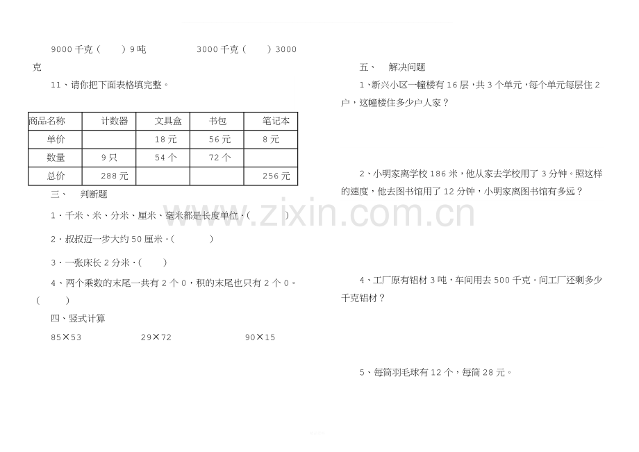 4、工厂原有铝材3吨,车间用去500千克.问工厂还剩多少千克铝材?