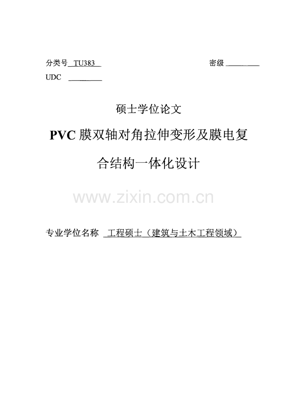分类号TU383 密级UDC _硕士学位论文PVC膜双轴对角拉伸变形及膜电复合结构一体化设计专业学位名称 工程硕士(建筑与土木工程领域)PVC膜双轴对角拉伸变形及膜电复合结构一体化设计 摘要膜结构被誉为21世纪最具代表性与发展空间的建筑形式,近年 来普遍应用于大型场馆和小型车棚等,采用合理的试验与分析方法获 得膜材力学参数和变形特征,是膜结构设计分析的重要基础。随着光 伏建筑一体化的推广,太阳能电池组件与系统的设计不断改进,由传 统的块状晶体硅太阳能电池发展到柔性薄膜太阳能电池,光伏构件的 光电性能、力学性能都是一体化设计需要考虑的重要部分。基于以上 内容,本文研究了 PVC膜材在单轴、双轴对角拉伸时的变形特征,同 时以膜结构作为载体,将膜与柔性薄膜电池复合,研究不同复合及加 载方式下柔性薄膜太阳能电池与膜的相对应变及其对电池光电转换 效率的影响。主要研究内容为以下三部分:首先,对PVC膜沿不同角度单轴拉伸,得到相应的拉伸曲线和变 形参数,利用数字图像处理技术观测膜面应变分布。其次,设计并制作双轴对角拉伸装置,得到马鞍形膜结构模型,研究节点构造措施对膜面承载力的降低作用,观察膜沿双向拉伸时的 变形特征。试验发现,膜角点处是薄弱部位,粘结加固或增加角板粗 糙度均能有效提高膜面承载力;沿45与经纬向拉伸时膜面变形有 所差异,45拉伸时膜曲面几何效果较为理想,承载能力和变形能力 相对更好。最后,将柔性薄膜太阳能电池与膜复合对角拉伸,测试单双轴拉 伸作用下电池的力电性能。单轴加载时,沿经纬向拉伸的复合结构中 电池变形与电压下降值较小,未影响电池正常工作性能,沿45拉伸 时,复合结构受到褶皱影响无法正常工作;复合结构双向拉伸时,通 过控制膜面应变值小于10%,电池应变值小于5%,可有效保证电池的 发电效率。关键词:PVC膜 柔性薄膜太阳能电池 单轴拉伸试验 双轴对角拉 伸试验应变电压数字图像处理DOUBLE-AXIS DIAGONAL TENS ILE DEFORMATION OF PVCFILM AND INTEGRATED DESIGN OF MEMBRANE ELECTRICCOMPOSITE STRUCTUREABSTRACTMembrane structure has been praised as the most representative and development space of the 21st century.In recent y ears,it has been widely used in large venues and small car sheds,Obtaining the mechanical parameters and deformation characteristics of the membrane by reasonable test and analy sis methods is an important basis for membrane structure design analy sis.With the promotion of photovoltaic building integration,the design of solar cell modules and sy stems has been continuously improved,from traditional bulk cry stalline silicon solar cells to flexible thin film solar cells,The photoelectric and mechanical properties of photovoltaic components are an important part of the integrated design.Based on the above,this paper studies the deformation characteristics of PVC film in uniaxial and biaxial diagonal stretching,At the same time,the membrane structure was used as the carrier to composite the membrane with the flexible battery,The relative strain of flexible thin film solar cells and films under different compounding and loading modes and their effects on the photoelectric conversion efficiency of the cells were investigated.The main research content is as follows:Firstly,we uniaxially stretched the PVC film at different angles,and obtained the corresponding tensile curves and deformation parameters.At the same time,the film surface strain distribution was observed by digital image processing technology.Secondly,we designed and fabricated a two-axis diagonal stretching device and obtained a saddle-shaped membrane structure model.We studied the effect of joint construction measures on the bearing capacity of the membrane surface and observed the deformation characteristics of the membrane along the biaxial stretching.It is found that the comers of the nfilm are weak parts,and the bond reinforcement or the increase of the slab roughness can effectively improve the bearing capacity of the film;The film surface deformation is different along the 45 and warp and weft directions,The geometrical effect of the film surface is ideal when stretched along 45,and the bearing capacity and deformation ability are relatively better.Finally,the flexible thin film solar cell was combined with the film to test the mechanical and electrical properties of the battery under uniaxial and biaxial stretching.When it is uniaxially loaded,the strain and voltage drop values of the battery in the warp and weft stretched composite structure are small,which does not affect the normal working performance of the battery;When stretched along 45,the composite structure is affected by wrinkles and cannot work normally.When the structure is biaxially stretched,by controlling the film surface strain value to be less than 10%and the battery strain value is less than 5%,which can effectively ensure the power generation efficiency of the battery.KEYWORDS:PVC film;Flexible thin-film solar cells;Uniaxial tensile test;Biaxial tensile test;strain;voltage;digital image processing technologyin目录摘要.IABSTRACT.I I符号说明.1图表目录.2第1章绪论.11.1 研究背景.11.2 膜结构.21.3 太阳能电池.61.4 膜结构建筑光伏一体化.91.5 研究内容及意义.121.5.1 研究内容.121.5.2 意义.13第2章膜材强度指标试验研究.142.1 膜材本构关系.:.142.2 膜材单轴拉伸强度.162.2.1 拉伸试验指标.162.2.2 试验过程及结果分析.172.3 DICM数字图像处理.212.4 本章小结.25第3章膜结构双轴拉伸试验.263.1 膜节点处理.263.1.1 膜节点分类.263.1.2 节点加固试验.273.1.3 试验结果与分析.293.2 双轴拉伸试验.303.2.1 试验装置设计.313.2.2 角点粘合强度