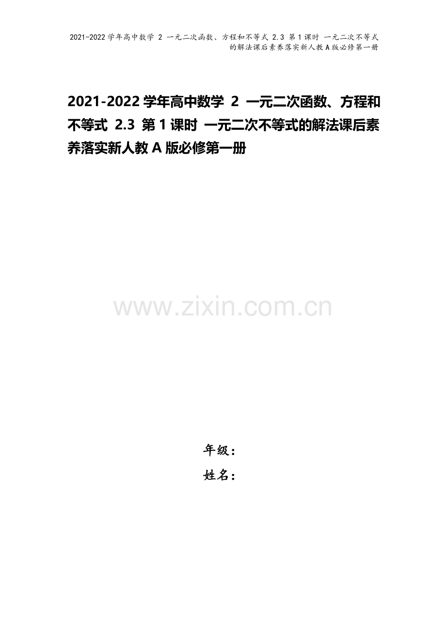 2021-2022学年高中数学 2 一元二次函数、方程和不等式 2.3 第1课时 一元二次不等式的解法课后素养落实新人教A版必修第一册