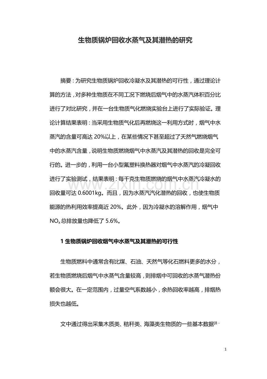1生物质锅炉回收烟气中水蒸气及其潜热的可行性
