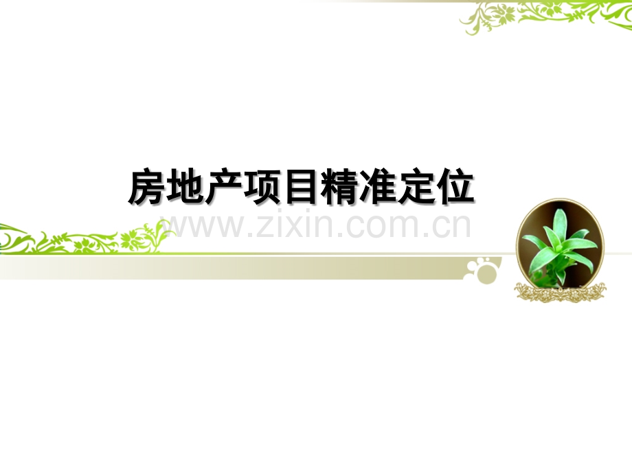 房地产项目精准定位房地产项目精准定位房地产项目定位房地产项目定位是指从各个方面各个方面去界定房地产开发商将要在该土地上“生产生产”一种怎样的“产品”以及提供怎样的服务。目的目的是找到消费区间和竞争区间目标群体和竞争者是定位的依据依据广告语定位广告语定位1、就掌灯好房子,说不清2、宽HOUSE高性价比联排别墅3、山上的别墅方便亲切会谈4、星河湾开创中国居住的全成品时代5、六佰本每个商铺都临街6、一千栋大美之地,定制别墅主场7、小平岛百万平米海岸线社区8、观唐中式别墅,反而涉外9、每一间山海边的舒适居住10、野鸭湖昆明两万亩山林别墅区11、海绵泡在海边的房子12、鼎科阿布全开门户31-62无压力型青春社区13、海绵泡在海边的房子14、龙门码头创意消费复合区15、万科东海岸真正的海岸生活16、佘山3号核心佘山,别墅家17、湖城大境百万平米史诗巨著18、石公馆藏于城市精华处19、西溪里墙门大宅传世之家20、先生的湖,山下的墅21、十五峯师著精端山宅22、龙湾别墅湖边的温泉独栋别墅23、万万树大树下的独栋庭院24、香港倚峦别墅山顶全维港景独立花园洋房25、天骄峰景南中国湖山官邸26、星河丹堤银湖山城市别墅CEO官邸27、滨江金色海岸全国一流水景住宅28、龙湖悠山郡200-400创新英伦田园独院29、天朗大兴郡千年一郡,辉煌当代(大兴起兮,郡飞扬)30、天正银河湾101温泉生活城房地产项目的定位原则:房地产项目的定位原则:1)适应性原则适应性原则:与当地或区域的社会经济发展水平和消费者收入水平相适应性;与区域房地产市场的物业档次、标准、品质相适应;和目标客户的消费特点和消费能力相适应;与企业的技术和管理水平相适应2)与企业发展战略相一致的原则:与企业发展战略相一致的原则:体现企业的竞争优势,发挥企业的核心竞争力,构建企业品牌和产品品牌3 3)差异化原则)差异化原则:市场差异化、产品差异化和形象差异化4 4)经济性原则:)经济性原则:在成本和费用测算、效益测算基础上计算的各项经济评价指标达到社会平均水平,确定项目盈利预期的可能性和风险性5 5)可行性原则)可行性原则(实施的可行性和经济评价的可行性)6 6)因地制宜:)因地制宜:根据不同的地段特点,制定不同的规划政策7 7)突出功能性原则:)突出功能性原则:教育、休闲娱乐、商业、绿化功能等功能定位需要考虑的因素定位需要考虑的因素1)现金流测算与把握:确定项目定位追求的方向2)土地条件:物业增值的前提(环境造型等)3)预期销售速度:影响回款速度4)客户群体:准确把握是开发成功的前提条件5)房屋的单价、总价构成:小户高价,大户低价6)公司擅长的开发类型:高端产品需要企业自身条件的支持7)公司要求的利润和品牌:类型定位类型定位房地产类型:普通住宅、别墅、写字楼、公寓、商场、专业市场、购物中心、酒店、住宅+沿街商铺、酒店式公寓+沿街商铺等【住宅】是指专供居住的房屋,包括别墅、公寓、职工家属宿舍和集体宿舍(包括职工单身宿舍和学生宿舍)等。但不包括住宅楼中作为人防用、不住人的地下室等,也不包括托儿所、病房、疗养院、旅馆等具有专门用途的房屋。【成套住宅】是指由若干卧室、起居室、厨房、卫生间、室内走道或客厅等组成的供一户使用的房屋。住宅按套统计。两户合用一套的住宅,按一套统计;一户用两套或两套以上的应按实际套数统计。【非成套住宅】是指供人们生活居住的但不成套的房屋。【集体宿舍】是指机关、学校、企事业单位的单身职工、学生居住的房屋。1、住宅 2 2、工业、交通、仓储用房、工业、交通、仓储用房 【工业用房】是指独立设置的各类工厂、车间、手工作坊、发电厂等从事生产活动的房屋。【公用设施用房】是指自来水、泵站、污水处理、变电、燃气、供热、垃圾处理、环卫、公厕、殡葬、消防等市政公用设施的房屋。【铁路用房】是指铁路系统从事铁路运输的房屋。【民航用房】是指民航系统从事民航运输的房屋。【航运用房】是指航运系统从事水路运输的房屋。【公交运输用房】是指公路运输、公共交通系统从事客、货运输、装御、搬运的房屋。【仓储用房】是指用于储备、中转、外贸、供应等各种仓库、油库用房。【商业服务用房】是指各类商店、门市部、饮食店、粮油店、菜场、理发店、照相馆、浴室、旅社、招待所等从事商业和为居民生活服务所用的房屋。【经营用房】是指各种开发、装饰、中介公司等从事各类经营业务活动所用的房屋。【旅游用房】是指宾馆、饭店、乐园、俱乐部、旅行社等主要从事旅游服务所用的房屋。【金融保险用房】是指银行、储蓄所信用社、信托公司、证券公司、保险公司等从事金融服务所用的房屋。【电讯信息用房】是指各种邮电、电讯部门、信息产业部门,从事电讯与信息工作所用的房屋。3、商业、金融和信息用房【教育用房】是指大专院校、中等专业学校、中学、小学、幼儿园、托儿所、职业学校、业余学校、干校、党校、进修院校、工读学校、电视大学等从事教育所用的房屋。【医疗卫生用房】是指各类医院、门诊部、卫生所(站)、检(防)疫站、保健院(站)、疗养院、医学化验、药品检验等医疗卫生机构从事医疗、保健、防疫、检验所用的房屋。【科研用房】是