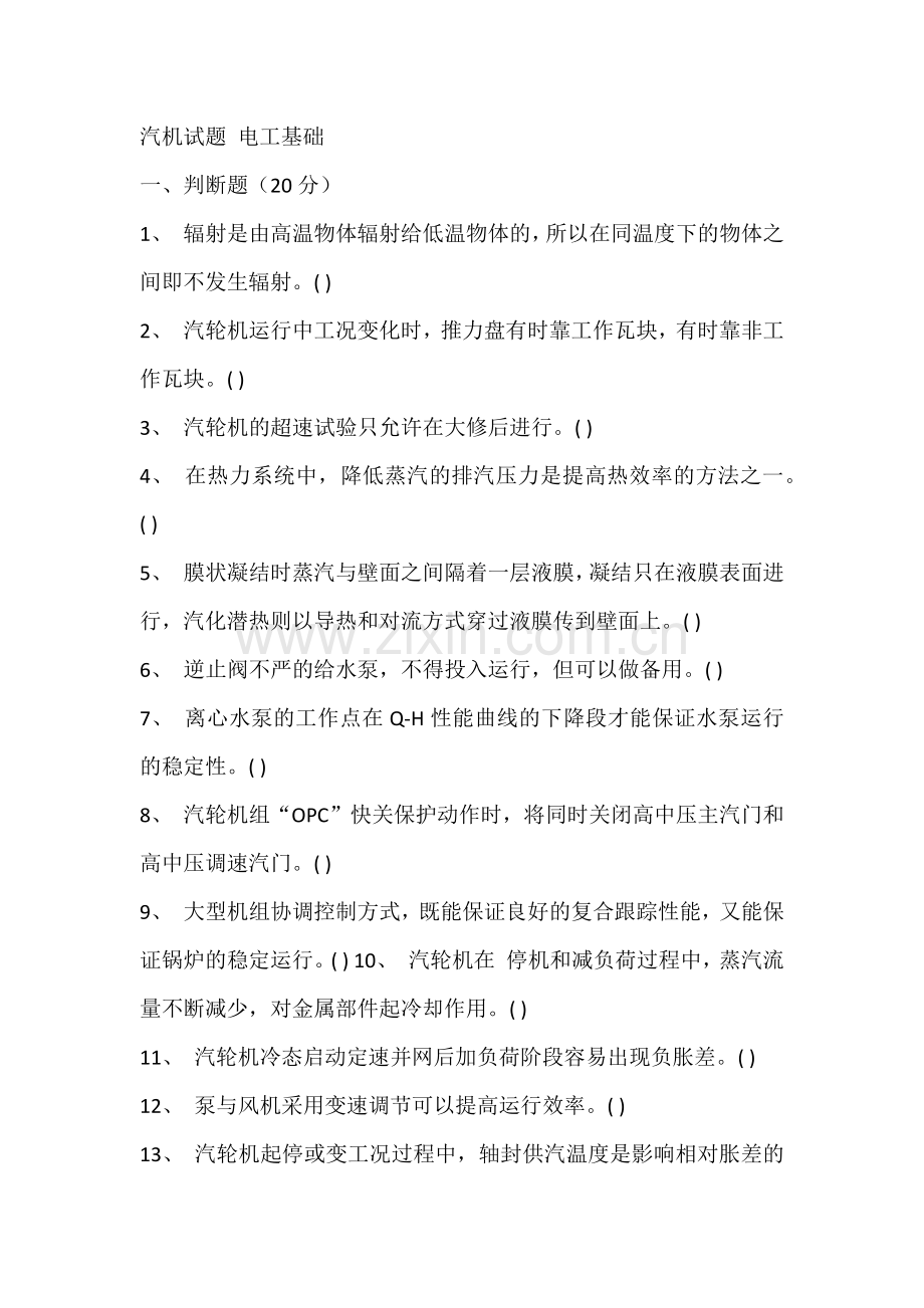 9、 大型机组协调控制方式,既能保证良好的复合跟踪性能,又能保证锅炉的稳定运行。( ) 10、 汽轮机在 停机和减负荷过程中,蒸汽流量不断减少,对金属部件起冷却作用。( )