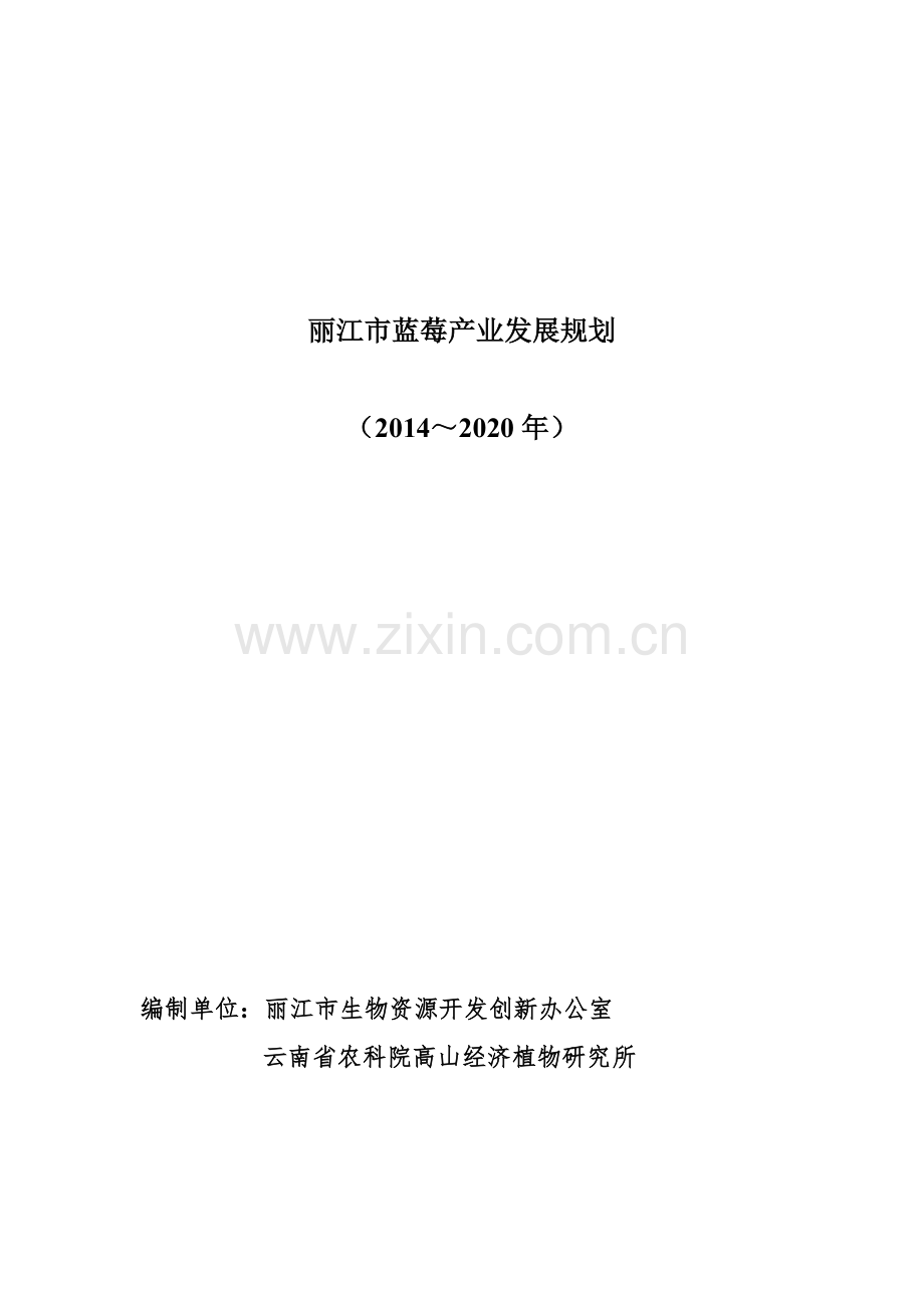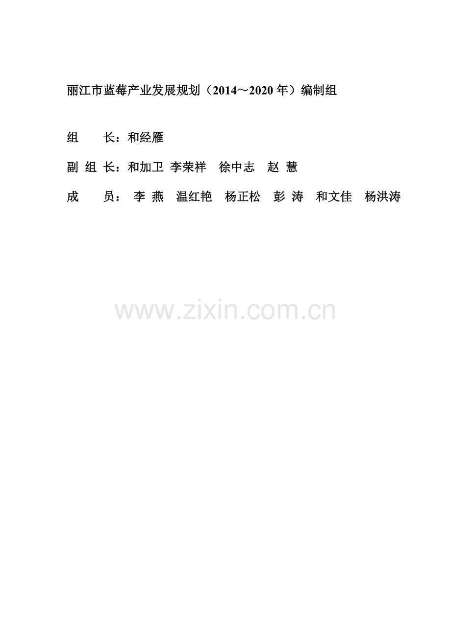 丽江市蓝莓产业发展规划(2014~2020年)编制组