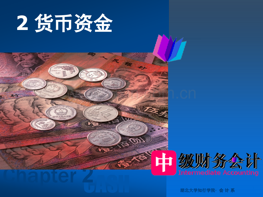 2024/5/22 周三12 货币货币资金资金湖北大学知行学院湖北大学知行学院会会计计系系CASHChapter 22024/5/22 周三2 2 货币资金货币资金第一节第一节库存现金库存现金第二第二节节银行存款银行存款第三第三节节外币外币本章学习内容本章学习内容2024/5/22 周三3本章学习重难点本章学习重难点1.现金的日常收支管理、库存现金的清查、现金的现金的日常收支管理、库存现金的清查、现金的主要账务处理主要账务处理2.银行存款的清查、银行转账结算方式及会计处理银行存款的清查、银行转账结算方式及会计处理3.外币记账要求、外币记账方法外币记账要求、外币记账方法4第一节第一节 库存现金库存现金一、库存现金的管理一、库存现金的管理1.1.库存现金的含义:库存现金的含义:广义的现金包括库存现金、银行活期存款、银行本广义的现金包括库存现金、银行活期存款、银行本票、银行汇票、信用证存款、信用卡存款等内容;狭义票、银行汇票、信用证存款、信用卡存款等内容;狭义的现金即库存现金。的现金即库存现金。在我国会计要素的核算中,现金的概念是狭义的在我国会计要素的核算中,现金的概念是狭义的,在我,在我国国的的现金流量表现金流量表中,现金的概念是广义的。中,现金的概念是广义的。2.2.现金的适用范围:现金的适用范围:a.a.现金支出现金支出u职工工资、津贴;职工工资、津贴;u个人劳务报酬个人劳务报酬u颁发给个人的科学技术、文化艺术、体育等各种奖金;颁发给个人的科学技术、文化艺术、体育等各种奖金;中级财务会计The love of money is a root of all kinds of evil.2024/5/22 周三5u各种劳保、福利费用以及国家规定的对个人的其他支出;各种劳保、福利费用以及国家规定的对个人的其他支出;u向个人收购农副产品和其他物资的价款;向个人收购农副产品和其他物资的价款;u出差人员必须随身携带的差旅费;出差人员必须随身携带的差旅费;u结算起点(结算起点(10001000元)以下的零星支出;元)以下的零星支出;u中国人民银行确定需要支付现金的其他支出。中国人民银行确定需要支付现金的其他支出。b.现金的收入现金的收入:剩余差旅费和归还备用金等个人的交款剩余差旅费和归还备用金等个人的交款;对个人或不能转账的集体单位的销售收入对个人或不能转账的集体单位的销售收入;不足转账起点的小额销售收入等不足转账起点的小额销售收入等.63.现金的日常收支管理现金的日常收支管理现金现金收入应当日送交开户银行;收入应当日送交开户银行;支支付付现现金金可可从从现现金金限限额额中中支支付付或或从从开开户户银银行行中中提提取取,一一般不得坐支现金;般不得坐支现金;从从开开户户银银行行提提取取现现金金,应应签签发发现现金金支支票票,注注明明用用途途,负负责人签字盖章,报开户行审核;责人签字盖章,报开户行审核;设立设立内部牵制制度;内部牵制制度;规定票据的管理办法;规定票据的管理办法;严格现金收支手续;严格现金收支手续;建立现金收支的审核、审查制度。建立现金收支的审核、审查制度。中级财务会计The love of money is a root of all kinds of evil.74.4.库存现金的限额库存现金的限额:是是指指为为保保证证各各单单位位日日常常零零星星支支出出按按规规定定允允许许留留存存的现金的的现金的最高数额最高数额。库存量一般不超过企业库存量一般不超过企业3-53-5天天日常零星支出量。日常零星支出量。远远离离银银行行或或交交通通不不便便(如如边边远远山山区区)的的企企业业,库库存存现金限额可多于现金限额可多于5 5天,但最多不超过天,但最多不超过1515天天的零星支出量。的零星支出量。中级财务会计The love of money is a root of all kinds of evil.8二、库存现金的核算二、库存现金的核算1.1.企业一切现金收支都企业一切现金收支都必须取得或填制原始凭证必须取得或填制原始凭证,作为,作为收付款的书面证明;收付款的书面证明;2.2.设置现金日记账进行现金的设置现金日记账进行现金的序时核算序时核算。每日终了,计。每日终了,计算全日的现金收入合计数、现金支出合计数和结存数,算全日的现金收入合计数、现金支出合计数和结存数,与实际库存数核对相符;与实际库存数核对相符;3.3.在会计总账上设置在会计总账上设置“库存现金库存现金”账户进行账户进行总分类核算总分类核算;4.4.月末终了,月末终了,明细账与总账核对相符明细账与总账核对相符。中级财务会计2024/5/22 周三9三、库存现金的清查三、库存现金的清查1.目的:确定现金目的:确定现金实有数与账面数是否相符实有数与账面数是否相符2.方法:方法:实地盘点实地盘点,包括出纳人员每日清点和清查小组定期和,包括出纳人员每日清点和清查小组定期和不定期的清查。不定期的清查。3.处理:处理:发现现金短缺或溢余,先通过发现现金短缺或溢余,先通过“待处理财产损益待处理财产损益”科目核算科目核算查明原因查明原因a.短缺:应由保险公司或责任人赔偿的,计入短缺:应由保险公司或责任人赔偿的,计入“其他应收款其他应收款”科科目;无法查明原因的短缺,计入目;无法查明原因的短缺,计入“管理费用管理费用”科目。科目。b.溢溢余:应支付给有关单位和个人的,计入余:应支付给有关单位和个人的,计入“
