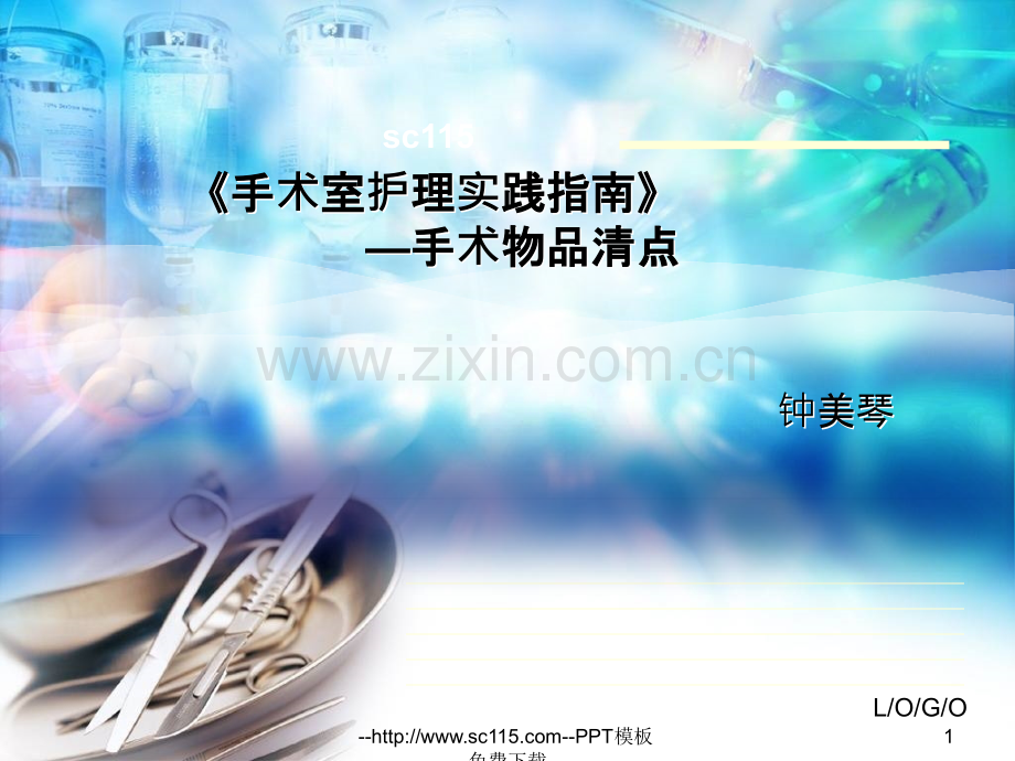 L/O/G/O手手手手术术室室室室护护理理理理实实践指南践指南践指南践指南手手手手术术物品清点物品清点物品清点物品清点 钟钟美琴美琴sc1151-http:/-PPT模板免费下载L/O/G/O1.概述概述-目的目的为手术医务人员提供手术物品清点操作规范,以防止手术物品遗留,保障手术患者的安全。使用范围适用于各种不同的医疗环境,包括住院部手术室、门诊手术室、日间手术室等实施创伤性诊疗的区域。2-http:/-PPT模板免费下载L/O/G/O2.名名词术语2.1手术清点物品手术清点物品包括手术敷料、手术器械、手术特殊物品。2.2手术敷料手术敷料指用于吸收液体、保护组织、压迫止血或牵引组织的纺织物品。包括纱布、纱垫、纱条、宫纱、消毒垫、脑棉片、棉签等。2.3手术器械手术器械指用于执行切割、剥离、抓取、牵拉、缝合等特定功能的手术工具或器械。如血管钳、组织剪、持针器等。3-http:/-PPT模板免费下载L/O/G/O2.名名词术语2.4杂项物品 杂项物品指无菌区域内所需要清点的各种物品。包括一切有可能遗留在手术切口内的物品,如阻断带、悬吊带、尿管等。2.5体腔体腔指人体内容纳组织及脏器的腔隙。通常包括颅腔(鼻腔)、胸腔、腹腔(含盆腔)及关节腔。2.6手术物品遗留手术物品遗留指手术结束后手术物品意外的遗留在患者体内。4-http:/-PPT模板免费下载L/O/G/O3.物品清点要求和原物品清点要求和原则3.1手术物品清点时机3.1.1第一次清点:即手术开始前;第二次清点:即关闭体腔前;第三次清点:即关闭体腔后;第四次清点:即缝合皮肤后。3.1.2增加清点次数时机如术中需交接班、手术切口涉及两个及以上部位或腔隙,关闭每个部位或腔隙时均应清点,如关闭膈肌、子宫、心包、后腹膜等。5-http:/-PPT模板免费下载L/O/G/O3.物品清点要求和原物品清点要求和原则3.2不同类型需清点的物品3.2.1体腔或深部组织手术应包括手术台上所有物品。如手术器械、缝针、手术敷料及杂项物品等。3.2.2浅表组织手术应包括但不仅限于手术敷料、缝针、刀片、针头等杂项物品。3.2.3经尿道、阴道、鼻腔等内镜手术应包括但不仅限于敷料、缝针,并检查器械的完整性。6-http:/-PPT模板免费下载L/O/G/O3.物品清点要求和原物品清点要求和原则3.3.1双人逐项清点原则 清点物品时洗手护士与巡回护士应遵循一定的规律,共同按顺序逐项清点。没有洗手护士时由巡回护士与手术医生负责清点。3.3.2同步唱点原则洗手护士与巡回护士同时清晰说出清点物品的名称、数目及完整性。7-http:/-PPT模板免费下载L/O/G/O3.物品清点要求和原物品清点要求和原则3.3.3逐项即刻记录原则每清点一项物品,巡回护士应即刻将物品的名称和数目准确记录与物品清点单上。3.3.4原位清点原则第一次清点及术中追加需清点的无菌物品时,洗手护士应与巡回护士即刻清点,无误后方可使用。8-http:/-PPT模板免费下载L/O/G/O4.物品清点注意事物品清点注意事项4.1医疗机构应有物品清点制度和相关的应急预案,明确清点的责任人、要求、方法及注意事项等,所有相关医务人员应遵照执行。4.2手术室应规范器械台上物品摆放的位置,保持器械台的整洁有序。9-http:/-PPT模板免费下载L/O/G/O4.物品清点注意事物品清点注意事项4.3手术前4.3.1巡回护士需检查手术间环境,不得遗留上一台手术患者的任何物品。4.3.2洗手护士应提前15-30分钟洗手,保证有充足的时间进行物品的检查和清点。在手术的全过程中,应始终知晓各项物品的数目、位置及使用情况。4.3.3清点时,洗手护士与巡回护士须双人查对手术物品的数目及完整性。巡回护士进行记录并复述,洗手护士确认。10-http:/-PPT模板免费下载L/O/G/O4.物品清点注意事物品清点注意事项4.4手术中4.4.1应减少交接环节,手术进行期间若患者病情不稳定、抢救或手术处于紧急时刻物品交接不清楚时,不得交接班。4.4.2严禁用器械或敷料等物品做他用,术中送冰冻切片、病理标本时,严禁用纱布等包裹标本。4.4.3手术物品未经巡回护士允许,任何人不应拿进或拿出手术间。11-http:/-PPT模板免费下载L/O/G/O4.物品清点注意事物品清点注意事项4.4手术中4.4.4医生不应自行拿取台上用物,暂不用的物品应及时交还洗手护士,不得乱丢或堆在手术区。4.4.5洗手护士应及时收回暂时不用的器械;监督术者及时将钢丝、克氏针等残端、剪出的引流管碎片等物品归还,丢弃时应与巡回护士确认。4.4.6台上人员发现物品从手术区域掉落或被污染,应立刻告知巡回护士妥善处理。12-http:/-PPT模板免费下载L/O/G/O4.物品清点注意事物品清点注意事项4.4手术中 4.4.7关闭体腔前,手术医生应配合洗手护士进行清点,确认无误后方可关闭体腔。4.4.8每台手术结束后应将清点物品清理出手术间,更换垃圾袋。4.4.9术前怀疑或术中发现患者体内有手术遗留异物,取出的物品应由主刀医生、洗手护士和巡回护士共同清点,详细记录,按医院规定上报。13-http:/-PPT模板免费下载L/O/G/O5.手手术敷料清点敷料清点5.1手术切口内应使用带显影标记的敷料5.2清点纱布、纱条、纱垫时应展开,并检查完整性及显影标记。5.3手术中使用的敷料应保留其原始规格,不得切割或做其他任何改型。特殊情况必须剪开时,应及时准确记录。5.4体腔或深部组织手术中使用有带子的敷料时,带子应暴露在切口外面。5.5当切口内需要填充治疗性敷料并带离手术室时,主刀医生、洗手护士、巡