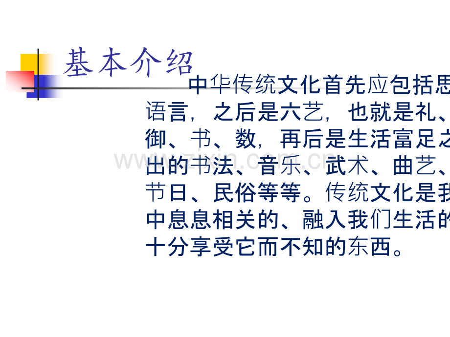 乐天小学基本介绍中华传统文化首先应包括思想、文字、语言,之后是六艺,也就是礼、乐、射、御、书、数,再后是生活富足之后衍生出的书法、音乐、武术、曲艺、棋类、节日、民俗等等。传统文化是我们生活中息息相关的、融入我们生活的,我们十分享受它而不知的东西。中华传统文化应包括:古文、古诗、词语、乐曲、赋、民族音乐、民族戏剧、曲艺、国画、书法、对联、灯谜、射覆、酒令、歇后语等。最贴近生活的是传统节日,传统节日(均按农历)有:春节(农历新年)、元宵节、清明节、清明节前后的寒食节、端午节、七夕节、中秋节、除夕。n诸子百家n琴棋书画n传统文学n传统节日n中华诗词n中国戏剧n中国建筑文文化化预预览览诸子百家n儒家儒家(孔子、孟子、荀子)思想:仁、义、礼、智、信;四书:中庸大学孟子论语n道家(老子、庄子;思想:道德,无为、逍遥)n墨家(墨子、墨子、思想:兼爱、非攻、举贤、节俭)n法家(韩非、李斯、韩非子思想:君主集权,以法治国)琴棋书画n古代乐器:笛子、二胡、古筝、萧、鼓、古琴、琵琶。n十大名曲:高山流水、广陵散、平沙落雁、梅花三弄、十面埋伏、夕阳箫鼓、胡笳十八拍汉宫秋月、阳春白雪、渔樵问答。传统文学n主要是指诗词曲赋。n诗经、汉乐府、孙子兵法、三十六计、先秦诗歌、汉赋、唐诗、宋词、元曲、明小说、四大名著(西游记红楼梦三国演义水浒传)聊斋志异等传统节日n中国有各种各样的传统节日,很多事情有各种礼仪和习俗。汉民族传统节日近50个。如下是15个主要节日:春节、上元节(元宵节)、花朝节(花神节)、上巳节(女儿节)、寒食节、清明节、端午节、七夕节、中元节(鬼节)、中秋节、重阳节、冬至节、腊八节、祭灶日(小年)、除夕。每个地方还有地方和民族的特色。中国戏剧n潮潮剧、昆曲、湘、昆曲、湘剧、京、京剧、豫、豫剧、二、二人人转、河北梆子、皮影、河北梆子、皮影戏、川、川剧、黄、黄梅梅戏、粤、粤剧、花鼓、花鼓戏、巴陵、巴陵戏、木偶、木偶戏 京京戏,脸谱中华诗词n古诗、律诗、绝句、近体诗、无题诗、自度曲(词)、传统诗词等。(可归类于传统文学)中国建筑n长城、牌坊、园林、寺院、钟、塔、庙宇、亭台楼阁、井、石狮、民宅、秦砖汉瓦、兵马俑、故宫世代相传民族特色 历史悠久博大精深中华文化的显著特点传承承?迷失?http:/www.fun.tv/vplay/g-109798.e-1?alliance=1520551中国有一个传统习俗,农历腊月二十三日或二十四日要过“小年”,通常人们要吃:A元宵B饴糖C腊八粥D饺子D2人们为何称妇女为“巾帼”?A妇女戴的头饰叫巾帼B妇女善于织造C源于一个叫巾帼的女子的典故D源于一个叫巾帼的地方A3在中国名山中,五岳占有显著的位置,其中“中岳”指的是:A泰山B华山C恒山D嵩山D4一般认为,北宋风俗画,清明上河图描绘的是什么季节的景象?A春天B夏天C秋天D冬天5下列不属于我国四大传说故事的是:A牛郎织女B孟江女C白蛇传D山海经AD6不属于文房四宝的是A宣纸B湖笔C徽墨D河砚:D7我们用“羞花”来形容历史上哪位美女?A西施B杨贵妃C貂禅D王昭君B8朝杖之年,耄耋之年是指多少岁?A60岁B100岁以上C80-100岁D70岁C9下列哪个不是中国六大古都:A南昌B开封C西安D洛阳A10我们常说的“鸿雁传书”源自于以下哪个历史故事?A文姬归汉B霸王别姬C苏武牧羊D楚汉相争C11秦始皇灭六国后,统一了全国文字,这种汉字称作:A隶书B小篆C楷书D行书B12四大书院中位于江西的是:A白鹿书院B石鼓书院C应天俯书院D岳麓书院A13四书指的是:中庸大学孟子论语14六艺是哪些:礼、乐、射、御、书、数15红楼梦四大家族姓氏是:16中国五岳指的是:华山、恒山、衡山、嵩山、泰山贾史王薛17二八佳人,猜一字妙18千里姻缘一线牵重19我们用“羞花”来形容历史上哪位美女西施20耳环最原始的作用约束女性的行为ThankThankThankThankyouyouyouyou
