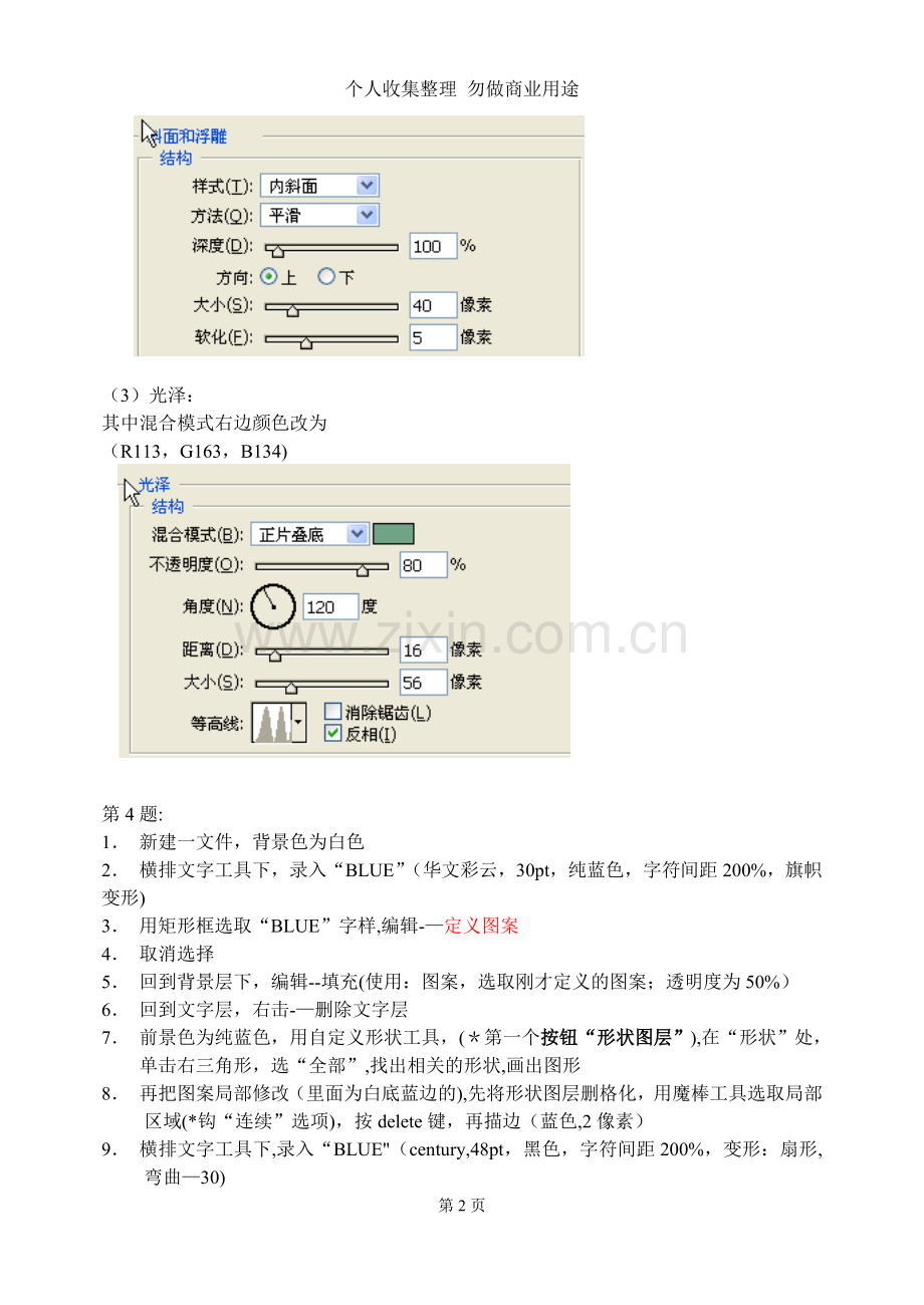 6. 对图层2,缩小变换。设置斜面浮雕(内斜面,平滑,方向上,大小5,角度:—122,高度30,去掉全局光)