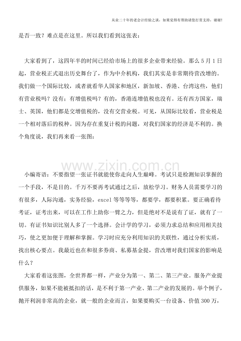 小编寄语:不要指望一张证书就能使你走向人生巅峰。考试只是检测知识掌握的一个手段,不是目的。千万不要再考试通过之后,放松学习。财务人员需要学习的有很多,人际沟通,实务经验,excel等等等等,都要学,都要积累。要正确看待考证,证考出来,可以在工作上助你一臂之力,但是绝对不是说有了证,就有了一切。有证书知识比别人多了一个选择。会计学的学习,必须力求总结和应用相关技巧,使之更加便于理解和掌握。学习时应充分利用知识的关联性,通过分析实质,找出核心要点。我最近也在和很多券商、私募基金提,营改增对我们国家的影响是什么?
