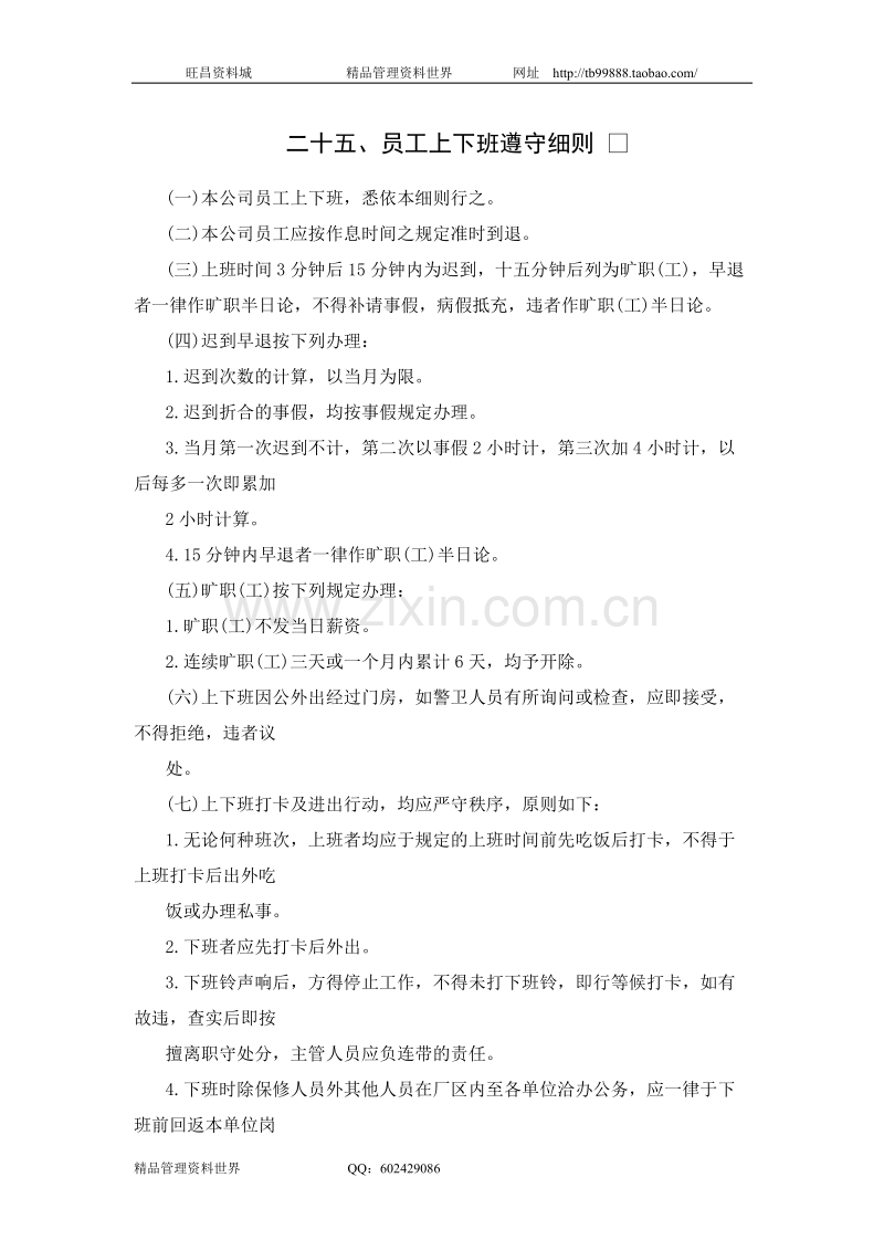 员工上下班遵守细则.doc