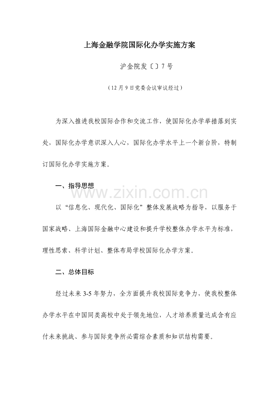上海金融学院国际化办学实施方案