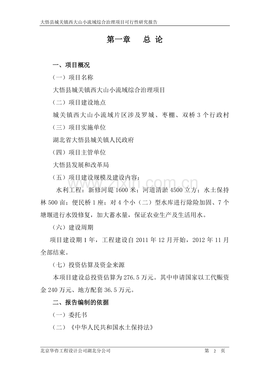 大悟县城关镇西大山小流域综合治理项目可行性研究报告