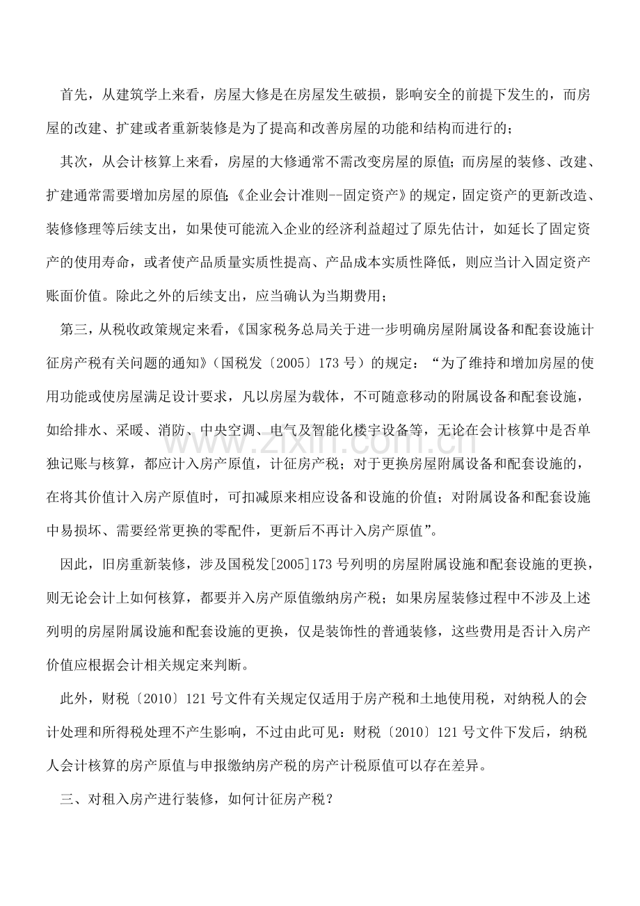 三、对租入房产进行装修,如何计征房产税?