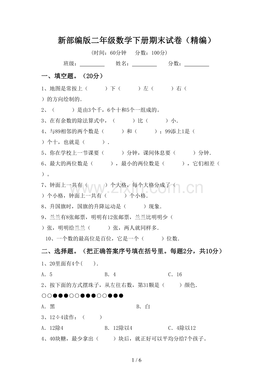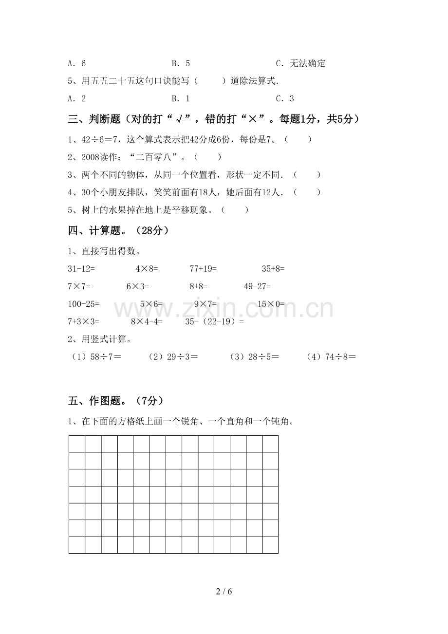 二、选择题。(把正确答案序号填在括号里。每题2分,共10分)