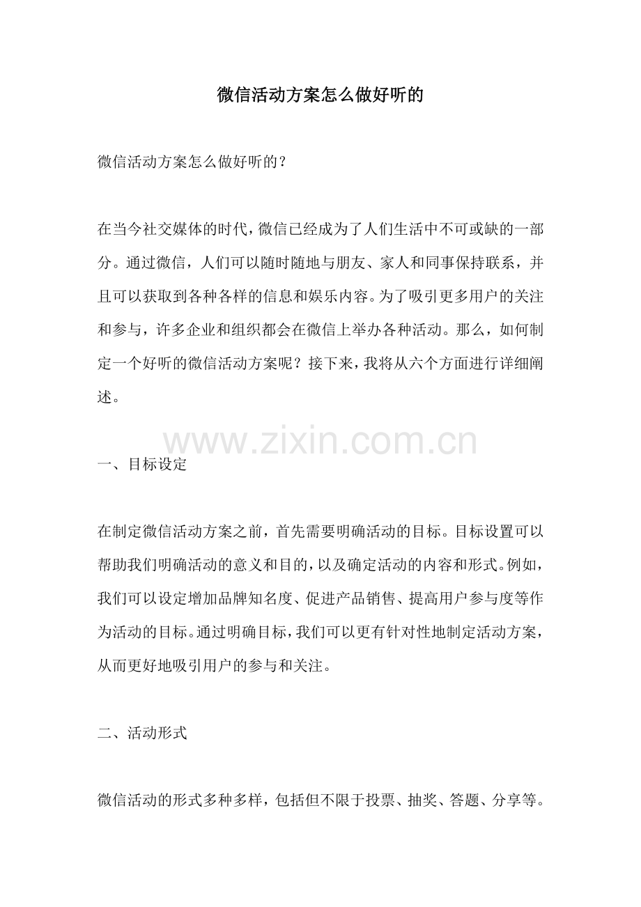 微信活动方案怎么做好听的