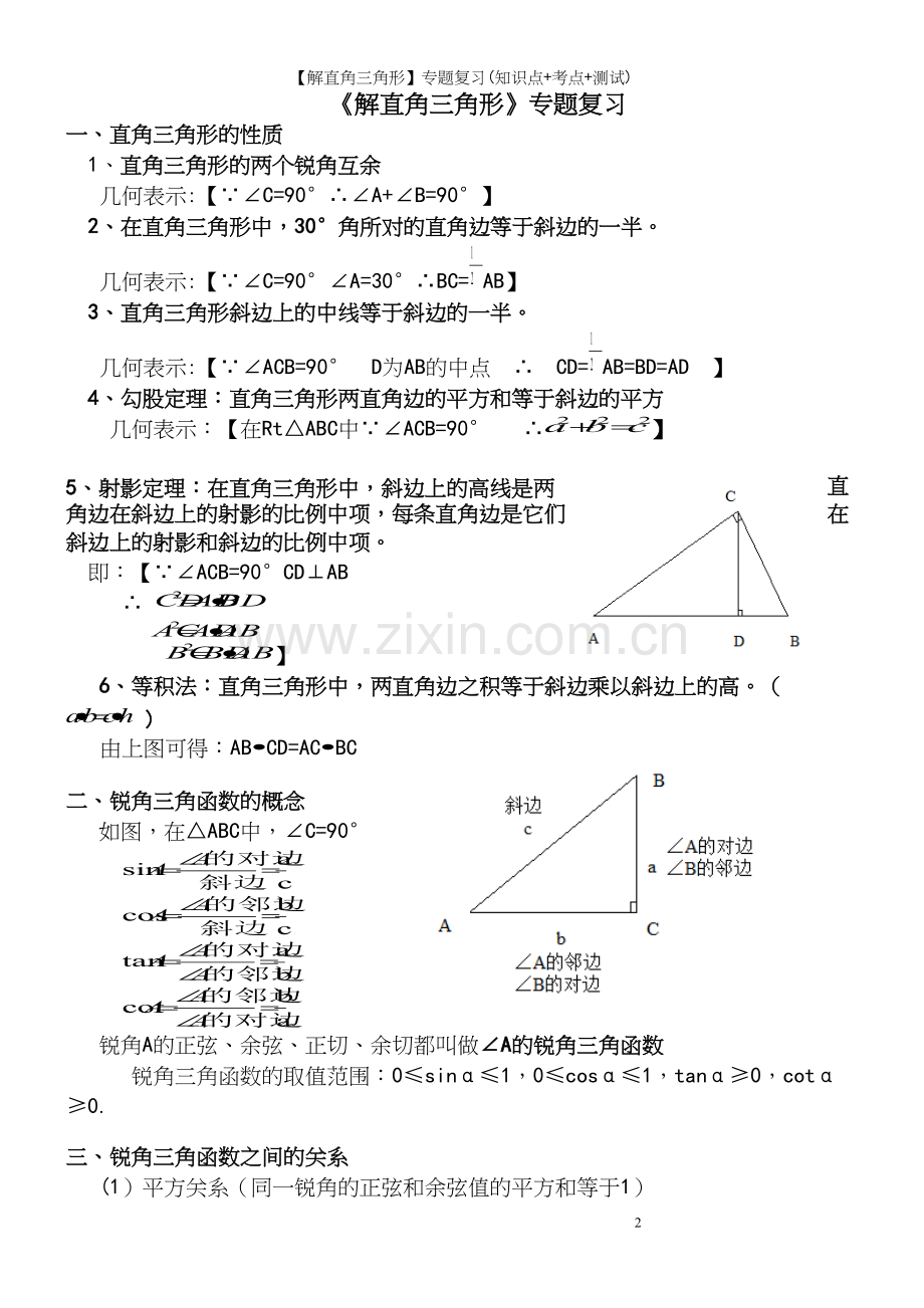 本文可编辑可修改,如果觉得对您有帮助请收藏以便随时查阅,最后祝您生活愉快 业绩进步,以下为【解直角三角形】专题复习(知识点+考点+测试)的全部内容。