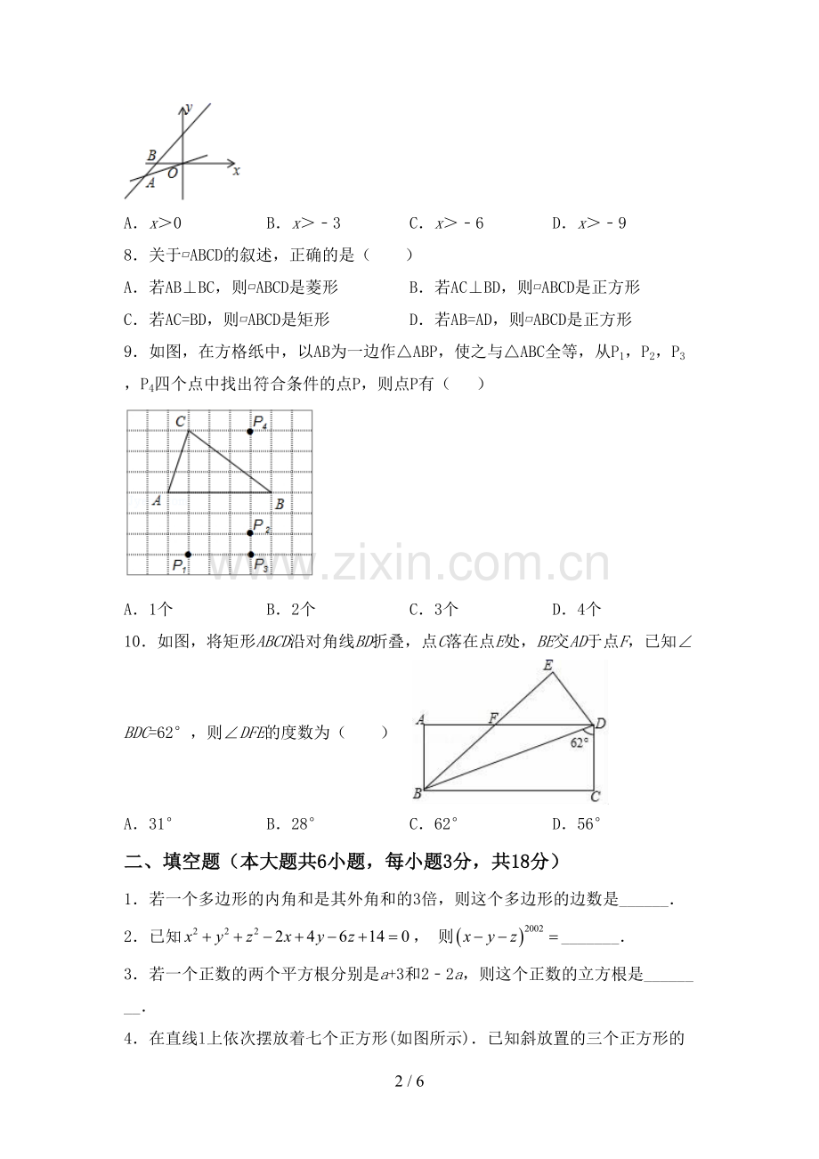 二、填空题(本大题共6小题,每小题3分,共18分)