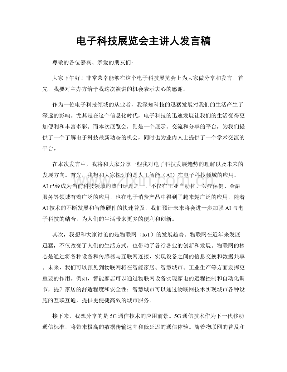 大家下午好!非常荣幸能够在这个电子科技展览会上为大家做分享和发言。首先,我要对主办方给予我这次演讲的机会表示衷心的感谢。