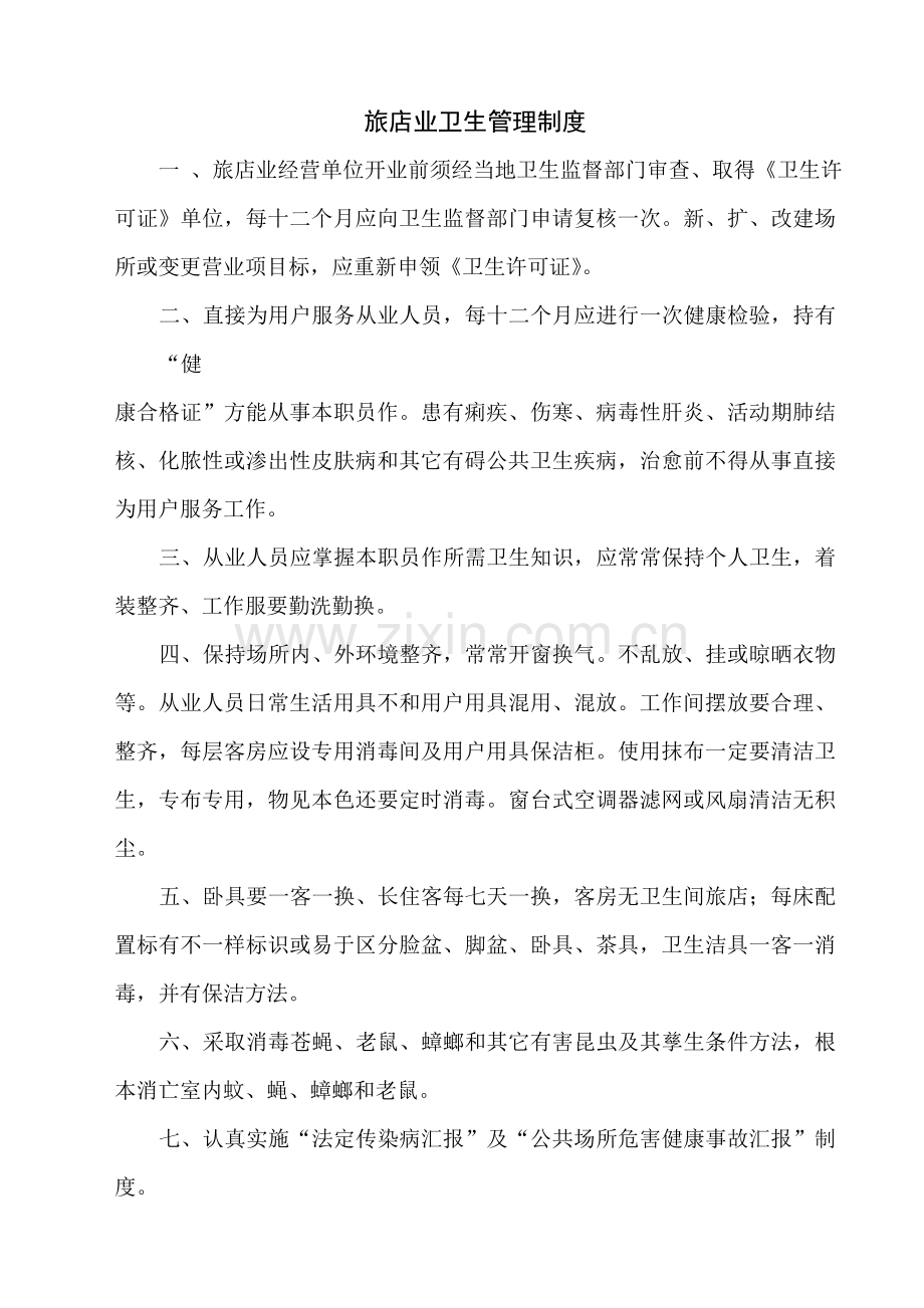 旅店业卫生管理制度