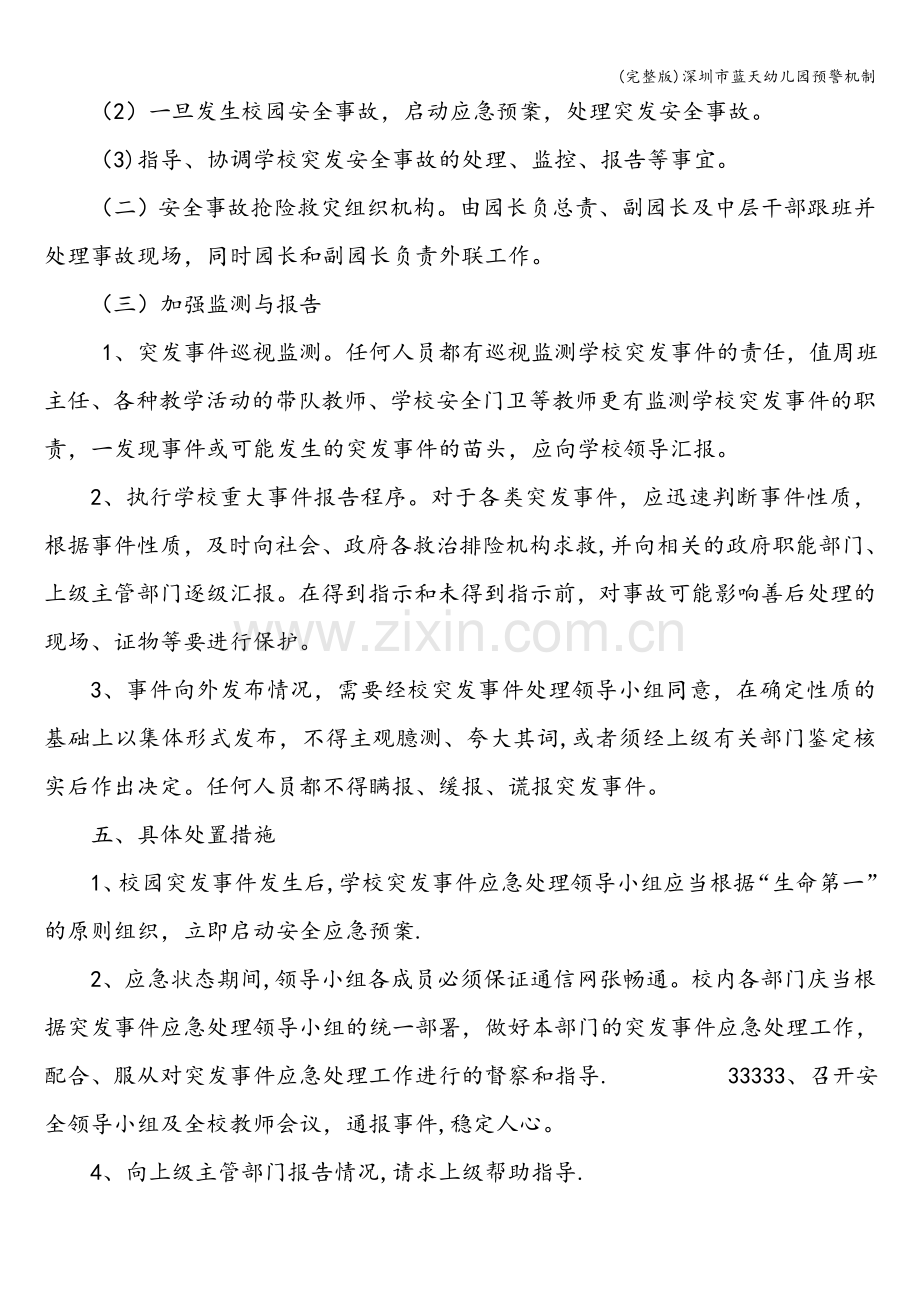 (二)安全事故抢险救灾组织机构。由园长负总责、副园长及中层干部跟班并处理事故现场,同时园长和副园长负责外联工作。