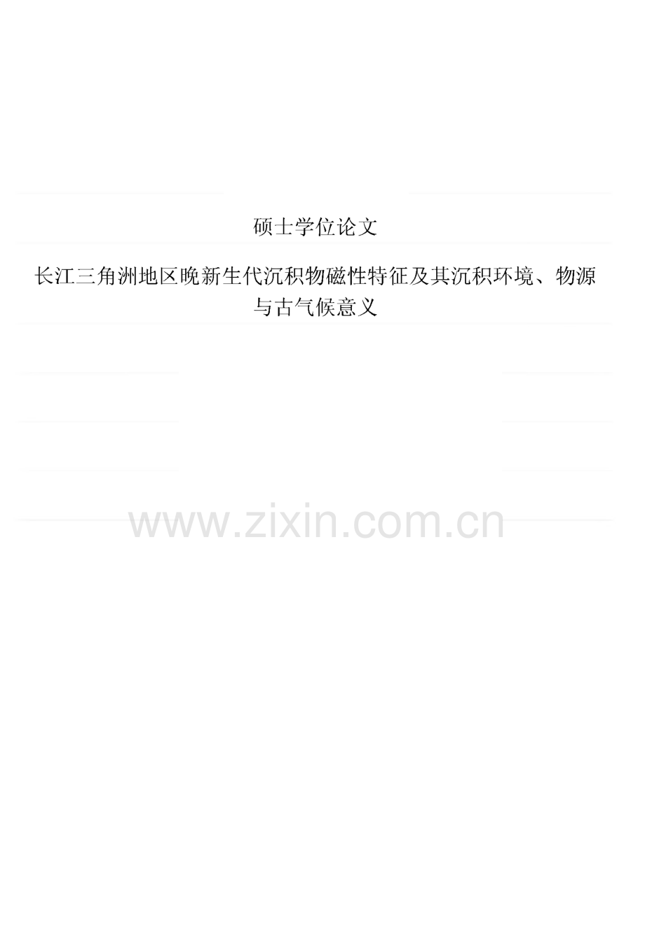 硕士学位论文长江三角洲地区晚新生代沉积物磁性特征及其沉积环境、物源 与古气候意义长江三角洲地区晚新生代沉积物磁性特征及其沉积环境、物源与古气候意义摘要长江三角洲联系着全球最大的边缘海盆和最高的高原,是当今海陆交互作用 最为敏感和最为复杂的地带,因此长江三角洲地区成为研究全球变化理想的场所 之一,但该区在古环境演化尤其是新生代以来的古环境研究,与西部黄土高原等 地相比,尚显不足。环境磁学作为20世纪70年代新兴边缘学科,具有“便宜、简便、快捷、对样品无破坏、磁学记录稳定”等优点,正得到越来越广泛的应用。在地学领域,环境磁学目前主要集中在黄土-古土壤,湖泊-海洋沉积物、油气勘 探等研究上。前人借助环境磁学对长江三角洲地区沉积环境演变的研究,时间尺 度较短,主要集中在全新世以来的现代沉积物上,对第四系乃至晚新生代以来河 湖相沉积物的研究还甚少。本文研究的钻孔(SG7孔)位于上海市南汇区新港镇,孔深322 m,直达底 部侏罗系基岩。本文主要通过对沉积物粒度和磁学的研究,结合岩性、古地磁测 年、抱粉、有孔虫等资料,来揭示该区晚新生代沉积物磁性特征及磁性矿物类型 和组合,探讨晚新生代以来影响该区沉积物磁性特征的沉积环境、物源与古气候 等因子,以期揭示我国东部地区晚新生代以来沉积环境演变对全球变化的区域响 应。钻孔150 m以上,按。.5m间距采样,150 m以下按1 m间距采样,粒度分 析共计431个样品,室温磁学测试共计445个样品。在此基础上,选择磁性异常 样品27个进行热、退磁测试.粒度分析计算的参数有平均粒径(Mz),中值粒 径(Md)以及粘土(v4 11111)、粉砂(463 11111)、砂(63 里 m)、细砂(63250 口 m)的百分含量。室温磁性测试及计算的参数包括频率磁化率(加)、质量磁 化率(x)、非磁滞剩磁(ARM)、等温剩磁(IRM)、磁化参数(FRmT、F100mT Fs o o mT)、退磁参数(S.jOmT、S-io o mT S_joq mT、)以及磁参数比值 XaRm/SIRM、XaRm/%热、退磁分析包括退磁曲线、磁滞回线和热磁曲线。磁性测试结果表明,该孔的磁性特征可分为四段:(一)、孔深322284m,粒度组分以粘土粉砂为主,磁化率达到全孔最高,其余各磁参数也出现极大值,在孔深305302 m尤为明显,显示为全孔磁铁矿、磁赤铁矿最富集的层段;同时,不完整反铁磁性矿物在该层含量也很高。上述磁 性特征和磁性矿物组合反映当时气候湿热、成土作用强烈,推测该层沉积为第三 纪古风化壳和古土壤。(二八孔深284204 m,为上新世沉积,粒度较粗,以含砾中粗砂为主,磁化率极低,磁性载体仍主要是亚铁磁性矿物(磁铁矿),磁性矿物颗粒较小,以单畴(SD)为主,同时不完整反铁磁性矿物相对含量较高。反映当时物源主 要为附近山区的风化剥蚀物,由于气候湿热,基岩风化强烈,导致磁性颗粒的细 I长江三角洲地区晚新生代沉积物磁性特征及其沉积环境、物源与古气候意义化和减少;同时磁赤铁矿的贫乏反映此时冲、洪积扇堆积快速,成土作用较弱。(三),孔深204 24m,属于更新世沉积,沉积物粒度和磁化率波动剧烈,且磁化率值的高低与细砂含量密切相关。众多磁参数表明,该区主导磁性矿物仍 是亚铁磁性矿物(磁铁矿居多),同时不完整反铁磁性矿物含量明显增多,集中 分布在各硬土层中。上述磁性特征和磁性矿物组合反映此时磁铁矿主要为河流和 波浪搬运的碎屑矿物。气候暖湿时,湖沼发育,沉积物颗粒变细,碎屑磁铁矿供 应减少,磁化率下降。硬土层中不完整反铁磁性矿物的富集可能反映浅水域的还 原环境,致使磁铁矿转化成反铁磁性矿物(针铁矿或水针铁矿),或由于湖沼相 沉积物暴露于空气中并经历成土作用,形成赤铁矿等不完整反铁磁性矿物。(四人 孔深24Wm,属于全新世沉积,以细颗粒沉积为主,但磁化率相对 较高,各项磁性分析指示亚铁磁性矿物(磁铁矿)的富集。可能反映早期滨、浅 海环境中,有较多自生亚铁磁性矿物生成,后期现代长江三角洲的发育,带来流 域内丰富的碎屑型磁性矿物,使得磁化率相对较高。另外,本孔的粒度和磁学分析还显示,本区陆相沉积磁性和粒度之间的关系,第三纪和第四纪截然相反,第四纪沉积物高磁化率段往往对应粗颗粒组分,低磁 化率段往往对应细颗粒组分,而第三纪沉积物粒度和磁性之间的关系似乎相反。因此,在使用磁化率作为气候指标时,应谨慎,不能简单的把西部(如黄土高原)地区磁化率作为气候指标移用到东部陆相地层中来,要综合考虑当时具体的沉积 环境、物源及古气候等因素。关键词:长江三角洲 晚新生代 环境磁学 沉积环境 物源 古气候长江三角洲地区晚新生代沉积物磁性特征及其沉积环境、物源与古气候意义Abs t r a ctCl o s el y l in k in g t h e l a r ges t o cea n a n d t h e h igh es t pl a t ea u,t h e Ya n gt ze River Del t a is t h e mo s t s en s it ive a n d co mpl ex r egio n,beco min g a n idea l in f o r ma t io n ca r r ier f o r gl o ba l ch a n ge.Co mpa r ed wit h den s el y s t udied a r ea s l ik e t h e Tibet a n Pl a t ea u a n d t h e Ch in es e Lo es s Pl a t ea u,t h er e is s t il l a l o n g wa y t o go f br t h e Qua t er n a r y r es ea r ch es pecia l l y f o r t h e Cen o zo ic in Ea s t Ch in a.As a n emer gin g edge dis cipl in e in 20t h cen t ur y 70s,En vir o n men t Ma gn et is m is widel y a ppl ied in ma n y a r ea s f o r it s mer it s-ch ea pn es s,s impl icit y co n ven ien ce,n o n-des t r uct io n f o r s a mpl es,s t a bl e r eco r ds o f ma gn et is m,et c.Cur r