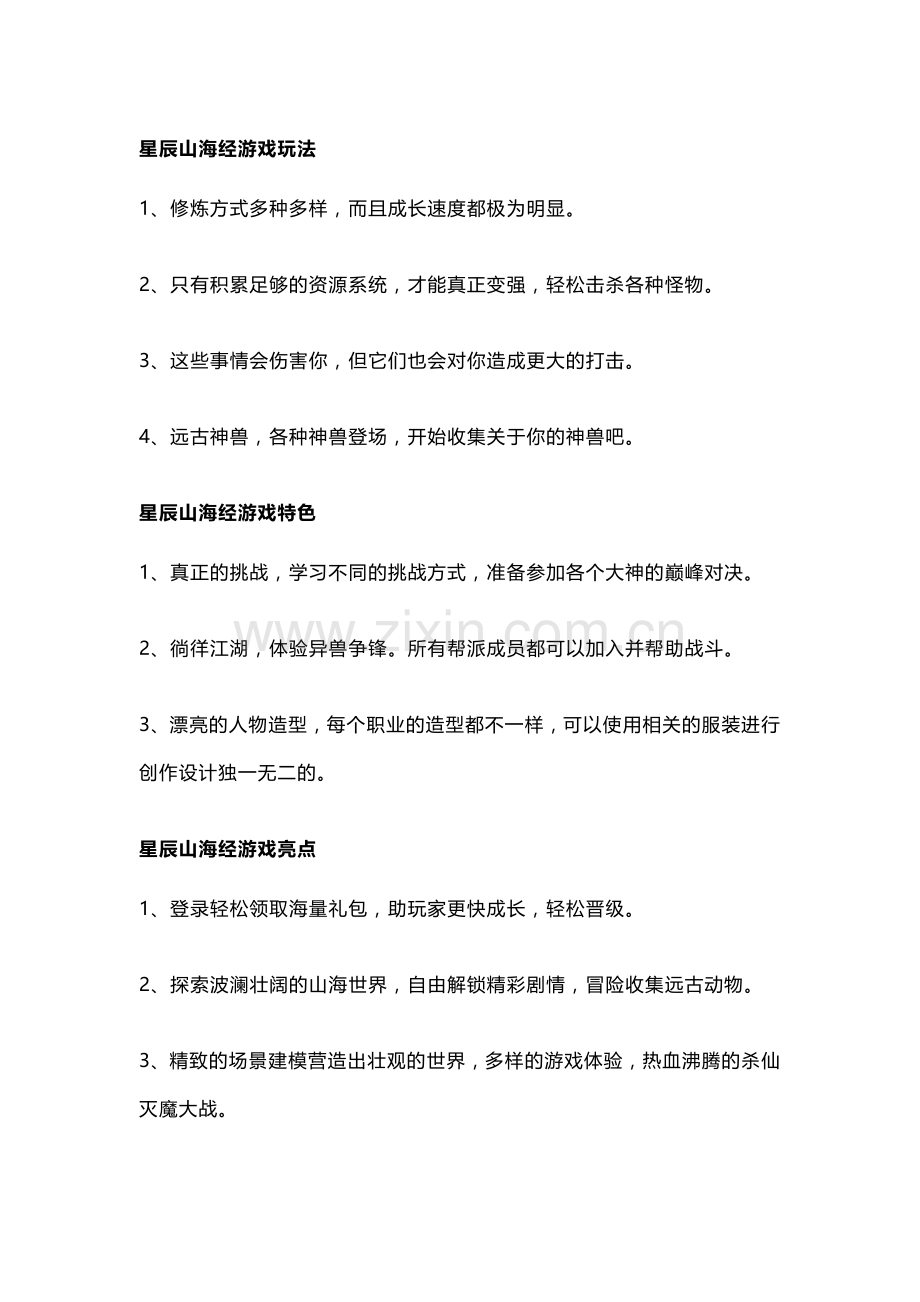 星辰山海经游戏特色