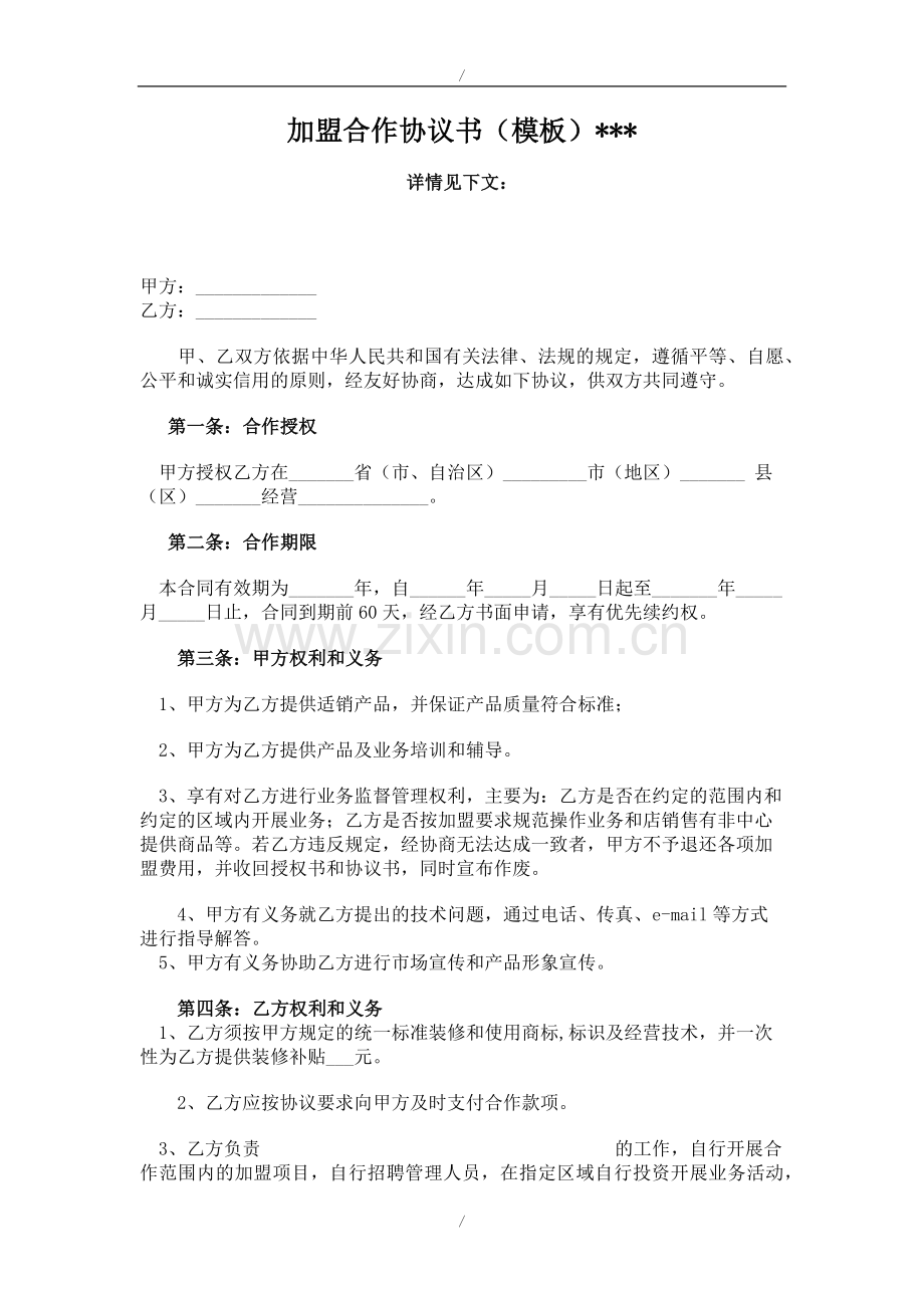 4、乙方应对甲方提供的加盟合作协议、经验方法等信息知识产权的保密,不得将此擅自转让或传授他人。